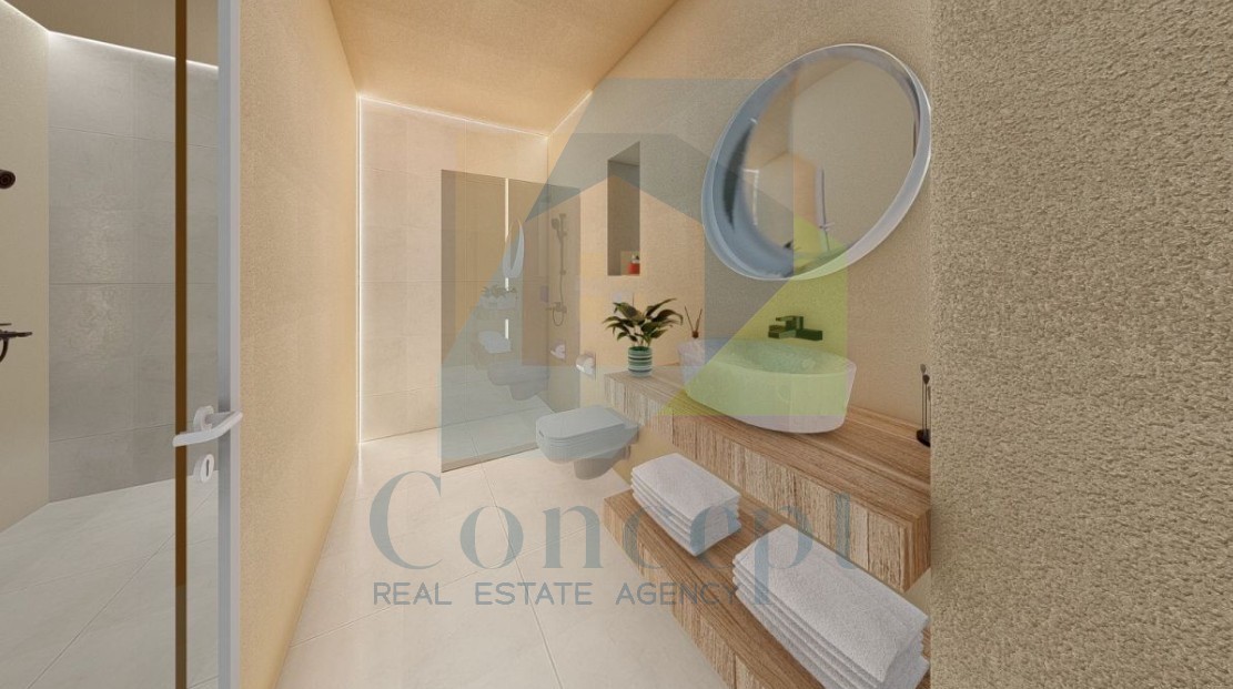 Das Grundstück mit einer Fläche von etwa 300 m² wird sorgfältig angelegt und mit Grünflächen verschönert. Im Garten ist der Bau eines Pools vorgesehen, was die Qualität des Aufenthalts im Freien zusätzlich steigert.