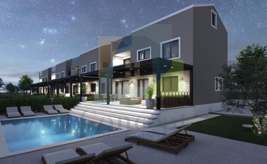 In einer ruhigen und angenehmen Umgebung, etwa 11 km von Poreč und dem Meer entfernt, wird ein im Bau befindliches Haus mit einer Gesamtfläche von 161 m² zum Verkauf angeboten. Es befindet sich als zweites von vier Häusern in einer Reihe und bietet eine moderne Aufteilung sowie eine hochwertige Bauweise, die auf ein angenehmes Leben ausgerichtet ist.