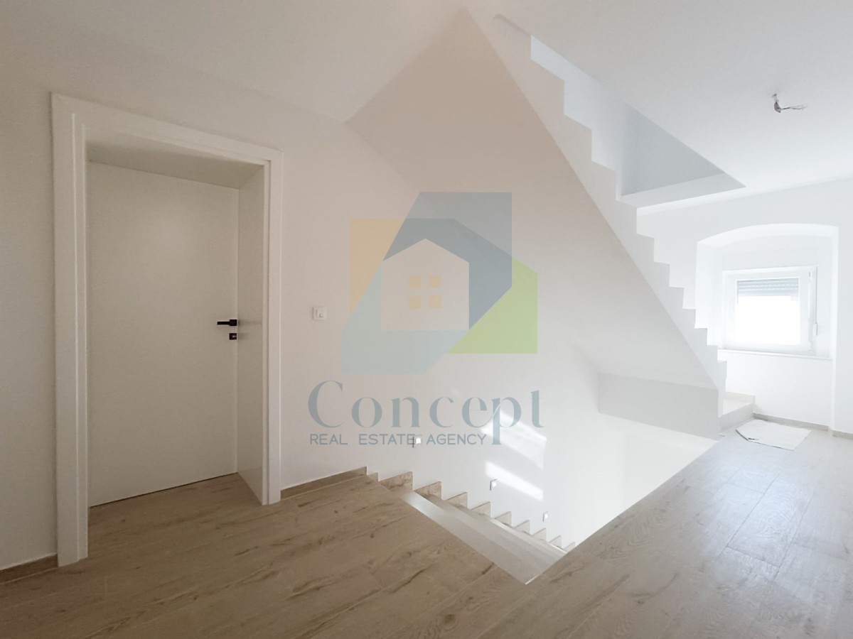 In einer ruhigen Lage, nur 5 km von Poreč und dem Meer entfernt, wird ein Doppelhaus mit einer Nettofläche von insgesamt 126,10 m² verkauft, das sich über drei Etagen erstreckt. Diese Immobilie bietet einen funktionalen Grundriss und hochwertige Ausstattung. Von der geräumigen Terrasse im obersten Stockwerk hat man einen schönen Blick auf das Meer.