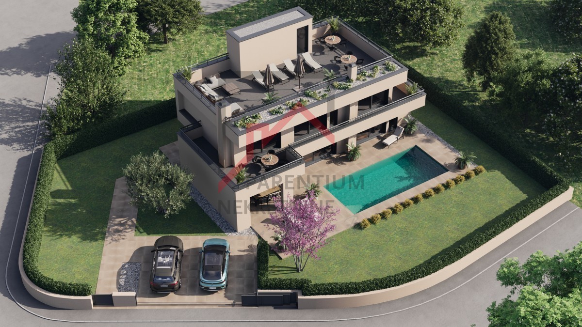 In der Nähe der Stadt Poreč, an einem Ort, der alle notwendigen Annehmlichkeiten zum Leben bietet, befindet sich diese moderne Villa mit Swimmingpool, deren Gesamtwohnfläche 213 m² beträgt, während die geräumige Dachterrasse mit 87,4 m² den Eindruck von Luxus und Komfort vervollständigt.