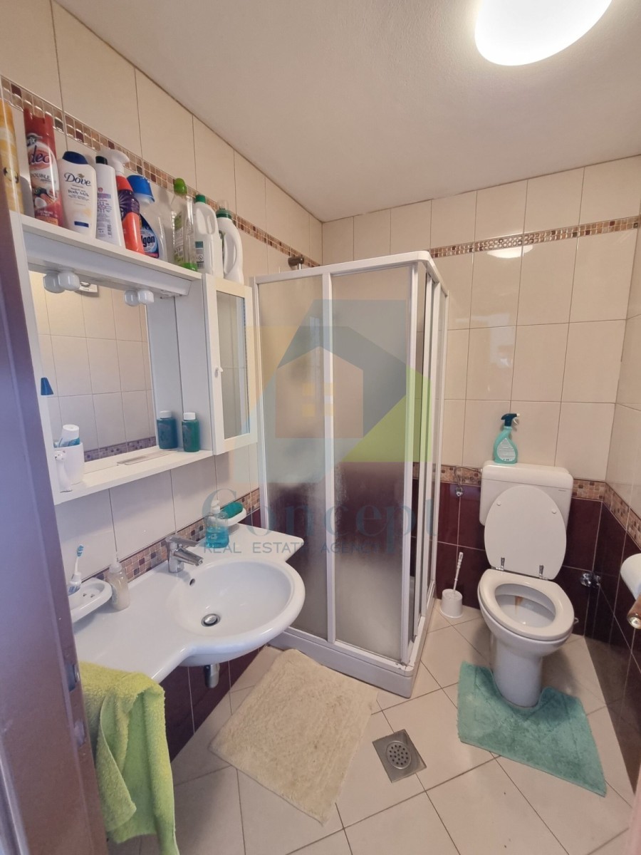 Die Wohnung besteht aus einem Flur, einem Wohnzimmer mit Essbereich, einer ausgestatteten Küche, zwei Schlafzimmern und einem Badezimmer. Vom Balkon mit einer Fläche von etwa 10 m² bietet sich ein wunderschöner offener Blick auf das Meer.