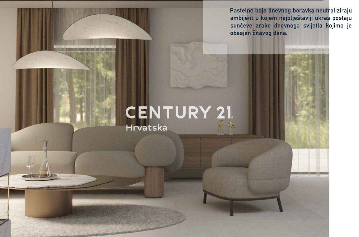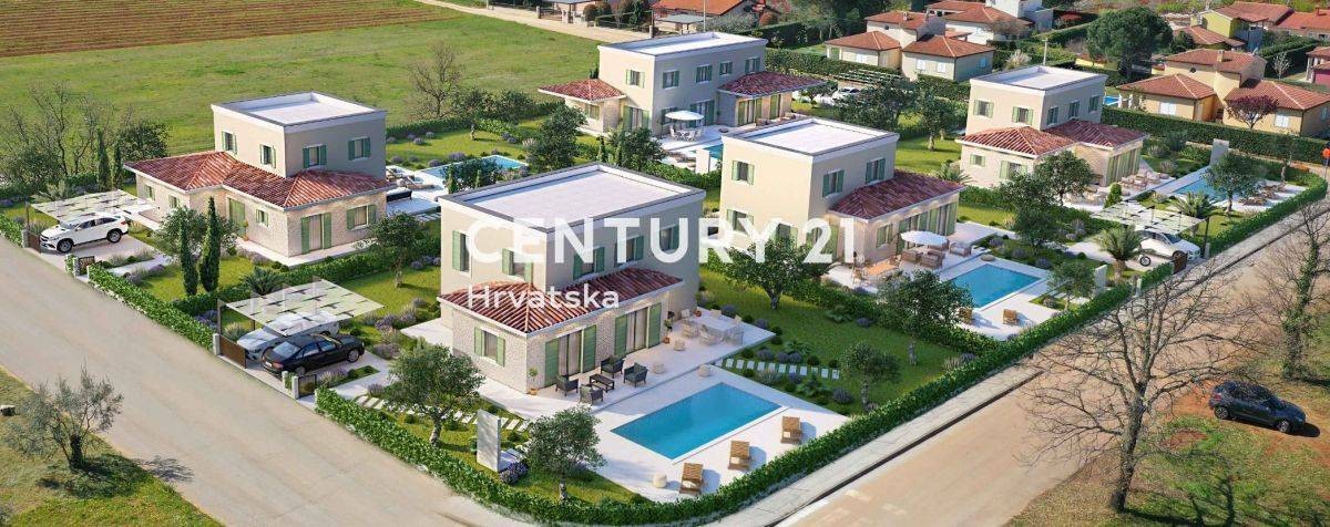 POREČ, UMGEBUNG, FREISTEHENDE VILLA MIT SCHWIMMBAD Wir verkaufen eine moderne freistehende Villa mit Swimmingpool, nur 4 km vom Meer und wunderschönen Stränden, 6 km von der Stadt Poreč entfernt. Die Villa mit einer Gesamtnettofläche von 147 m2 erstreckt sich über zwei Etagen: Erdgeschoss und erste Etage.