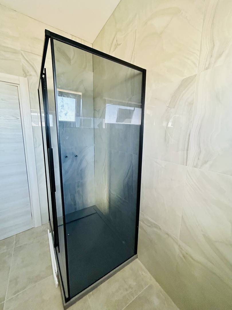 Es besteht aus einer Eingangshalle, einer Küche mit Esszimmer und einem Wohnzimmer mit Zugang zur Terrasse und zum Pool, zwei Schlafzimmern, einem Badezimmer, einer Waschküche und einer Toilette.