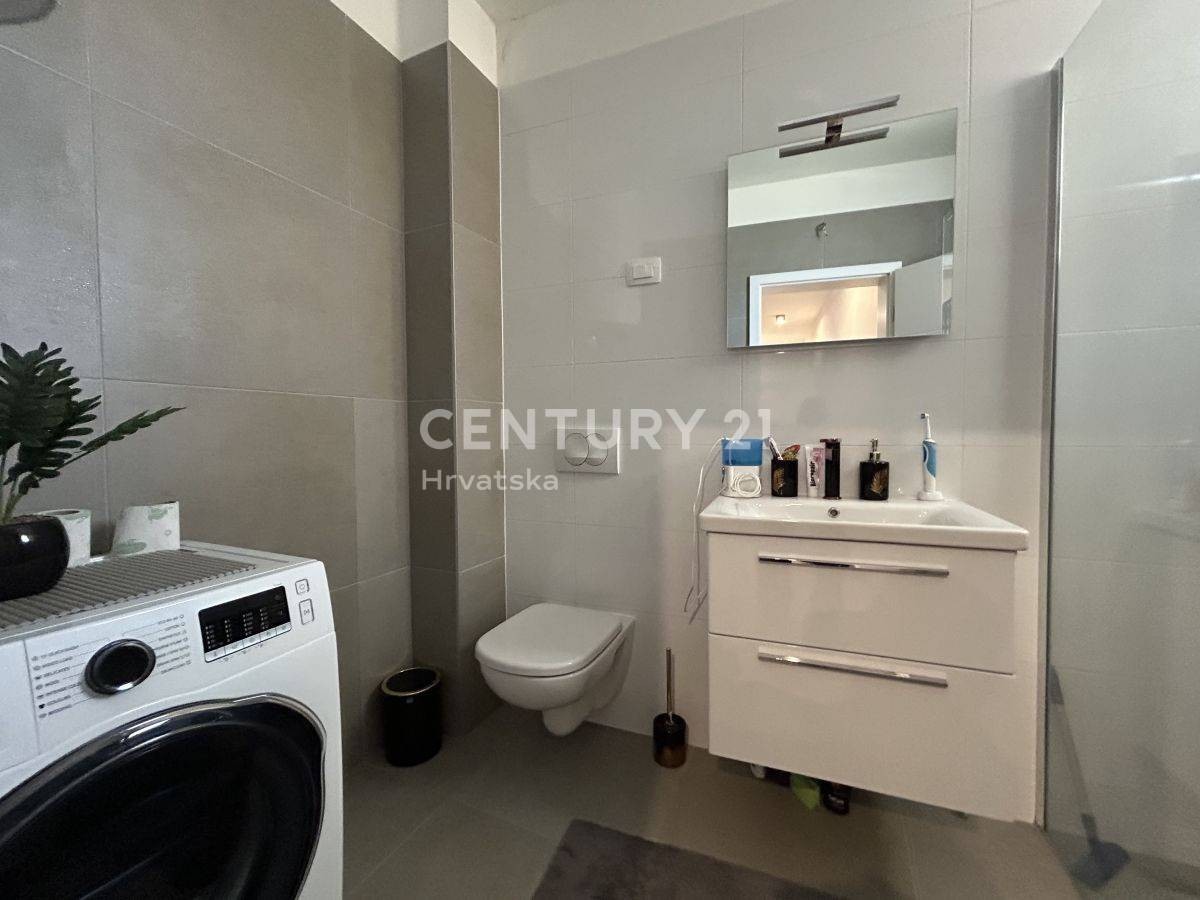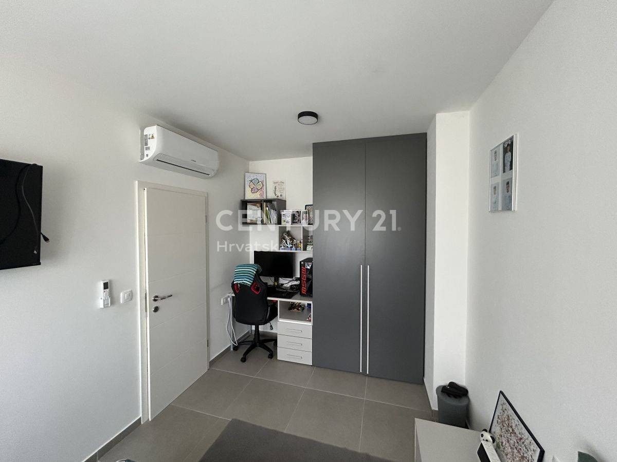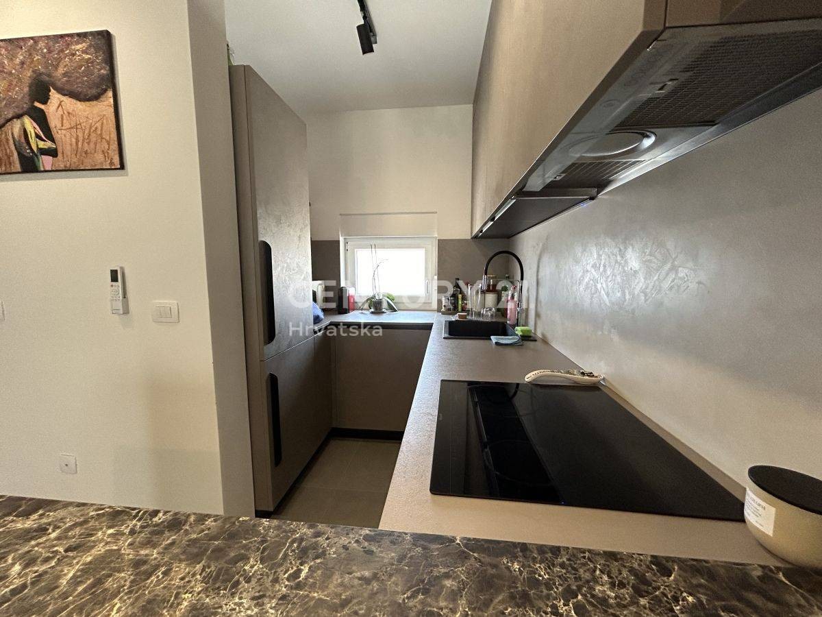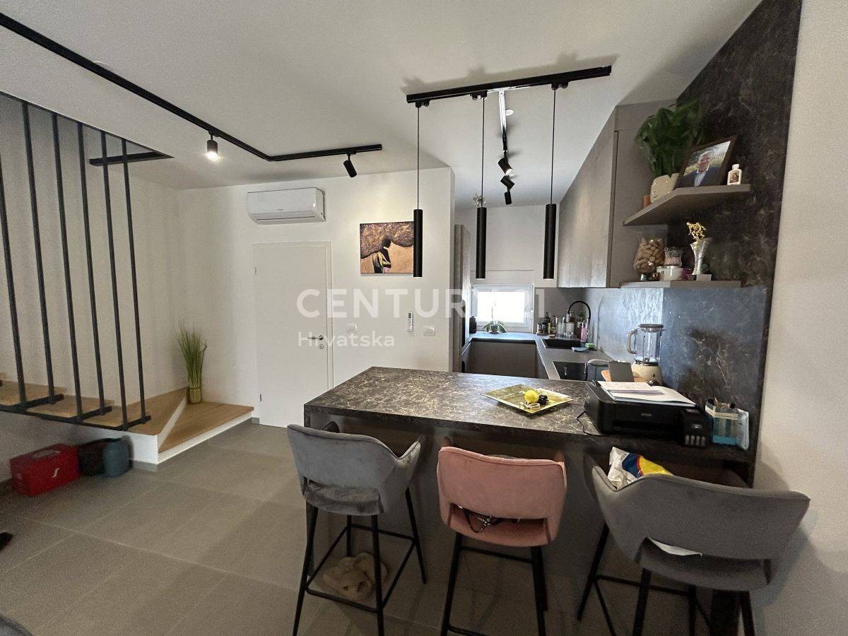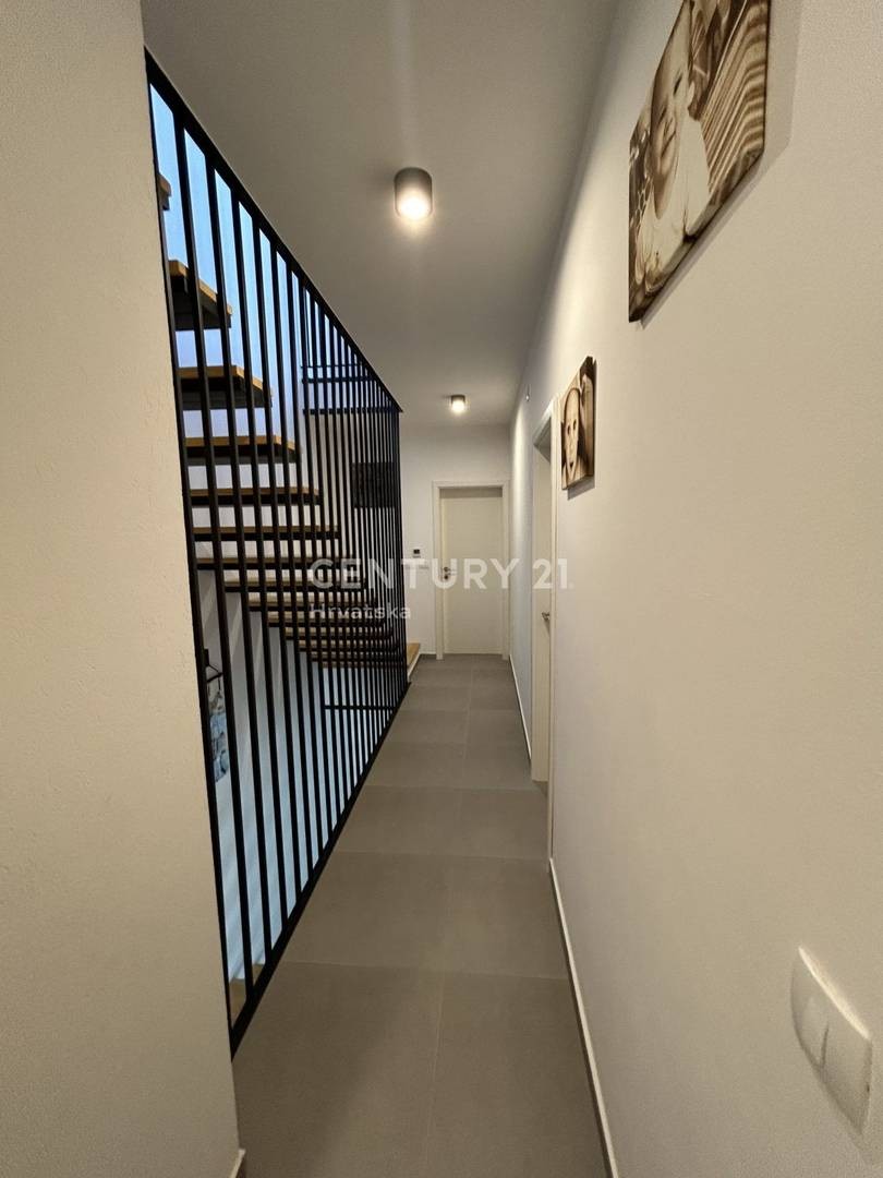 NOVIGRAD, UMGEBUNG, REIHENHAUS MIT MEERBLICK In einem ruhigen Dorf, nur 3 km von Novigrad und nur 1,5 km vom Meer und gepflegten Stränden entfernt, steht eine hochwertige Doppelhaushälfte mit einer Nettonutzfläche von 131 m2 und einer Gartenfläche von 2,5 m zum Verkauf 50 m2, modernes Design und hochwertige Bauweise. Das modern gestaltete Haus besteht aus drei Etagen, Erdgeschoss, erste Etage und zweite Etage. Im Erdgeschoss gibt es eine Eingangshalle, dann ein geräumiges Wohnzimmer mit Esszimmer und Küche nach dem „Open Space“-Konzept, eine Toilette.