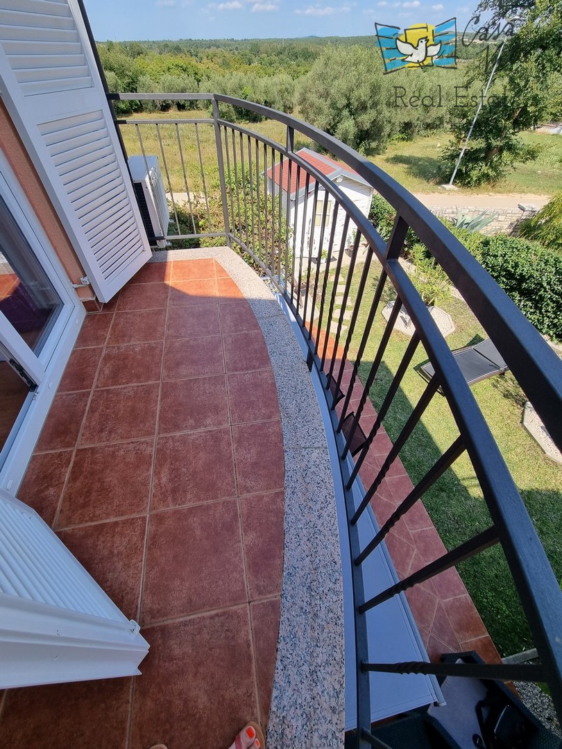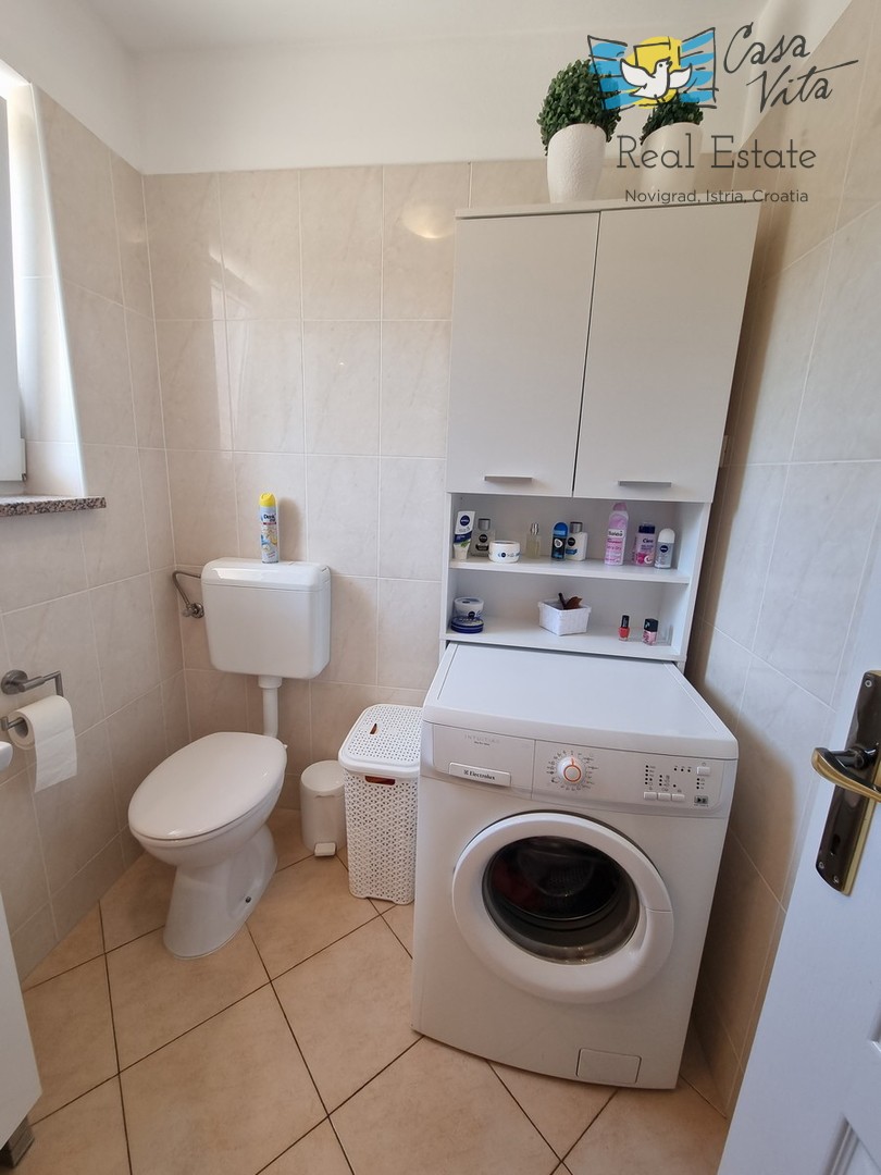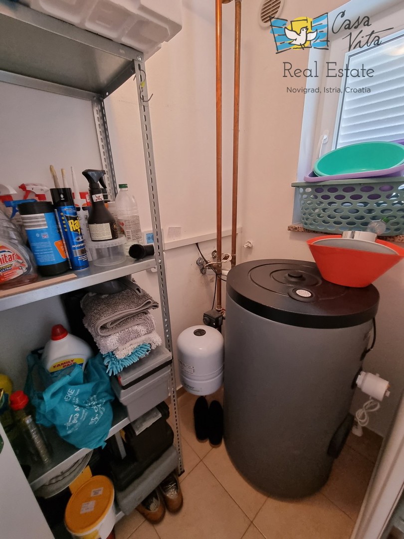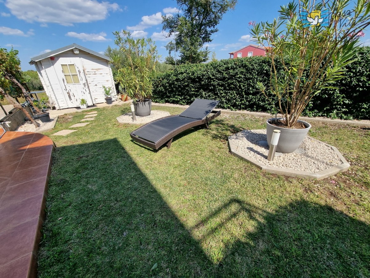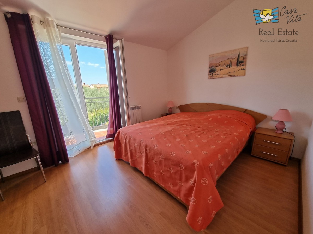 DIE WEITERE UMGEBUNG VON POREČ !!! In einer istrischen Stadt, in ruhiger Lage, mit freiem Blick in die Natur, das erste Haus in Folge von 105,75 m2 mit eigenem Garten von 290 m2. Es wurde 2008 gebaut. Es besteht aus Erdgeschoss und erster Etage. Das Erdgeschoss verfügt über einen Flur, WC + Waschküche, Technikraum, der Rest des Erdgeschosses ist ein großer Raum mit Küche, Esszimmer und Wohnzimmer mit Kamin, Abstellraum. Das Wohnzimmer öffnet sich zur Terrasse und zum Garten. Im Obergeschoss befinden sich drei Schlafzimmer, zwei davon mit eigenem Balkon und ein großes Badezimmer mit Dusche. Das Haus verfügt über eine elektrische Zentralheizung und auf jeder Etage befindet sich eine Klimaanlage. Es ist sehr gut erhalten und wird komplett mit Möbeln und Geräten verkauft. Die Wohnung verfügt auch über 2 Parkplätze.