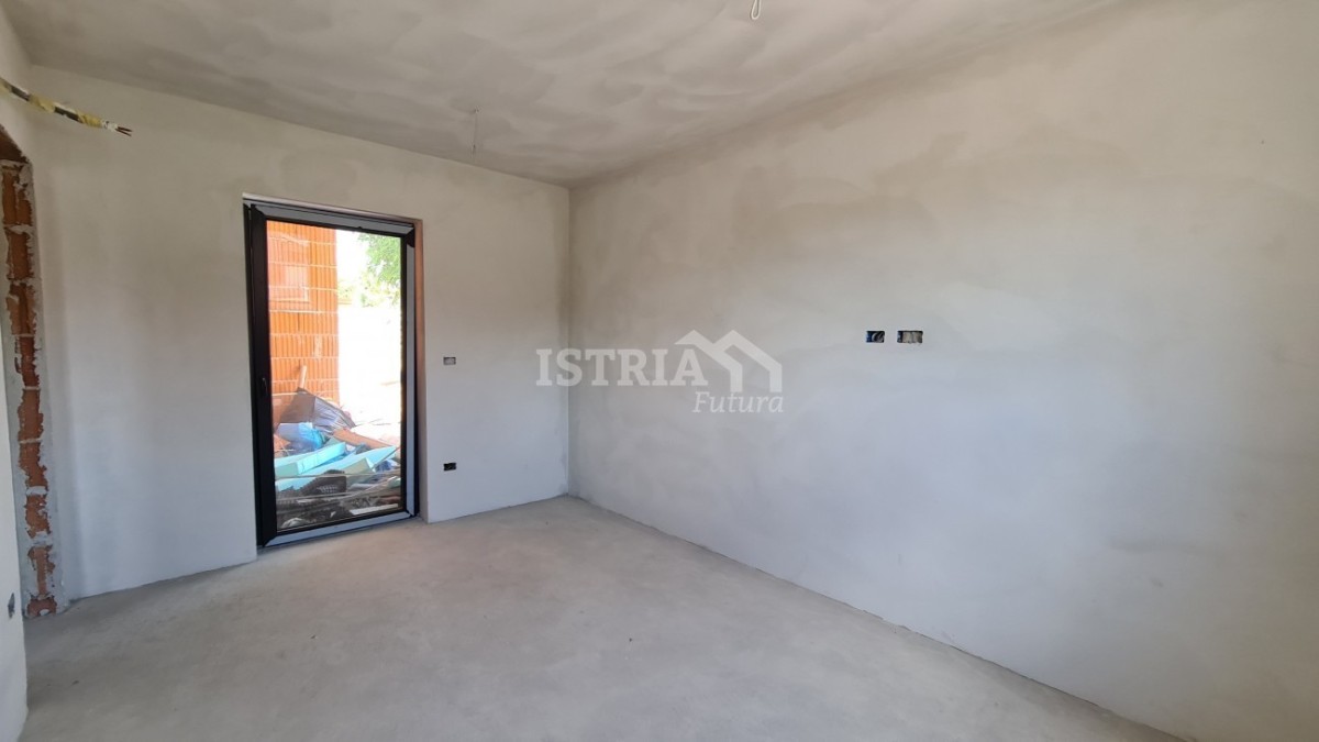 Zum Verkauf steht eine schöne Wohnung in einem neuen Gebäude mit einer Fläche von 80 m2, die nach Südosten ausgerichtet ist und sich im Erdgeschoss eines kleinen Wohngebäudes befindet, 7 km von Poreč und dem Meer entfernt.