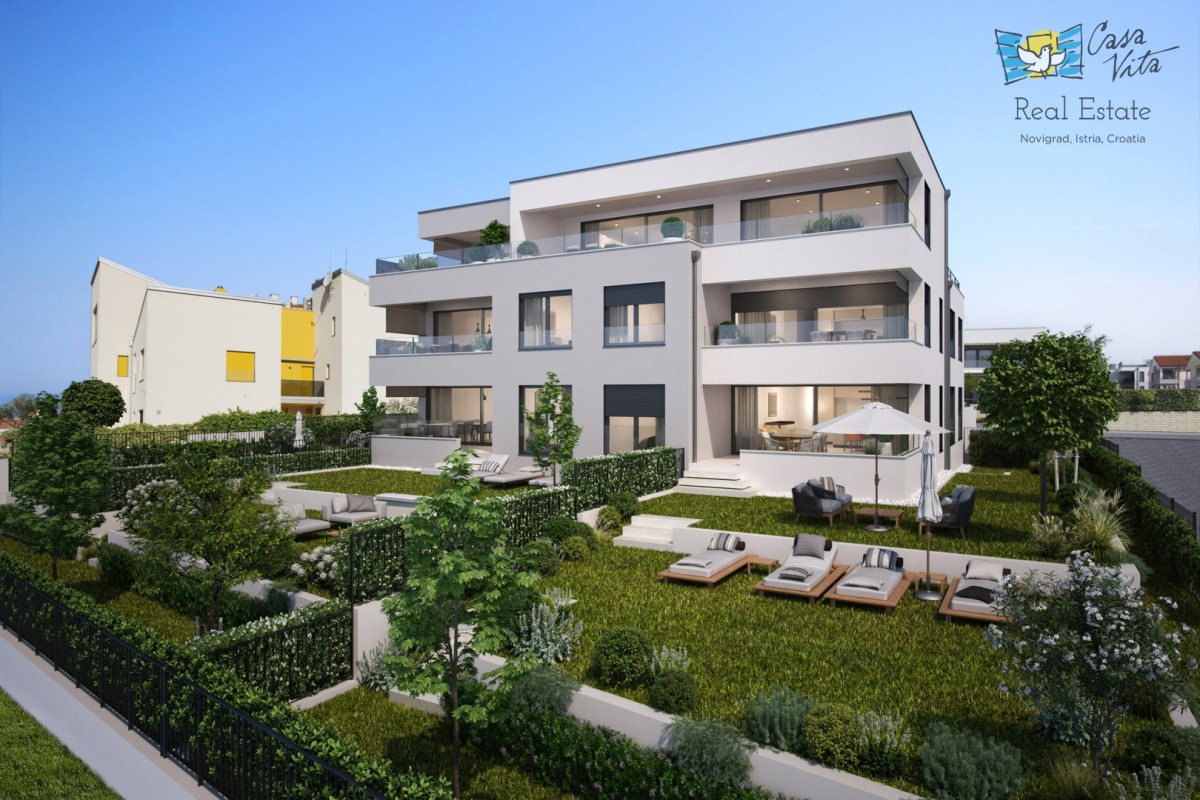 In Novigrad, nur 1 km vom Stadtzentrum und wunderschönen Stränden entfernt, entsteht ein Wohngebäude mit 8 Wohnungen.