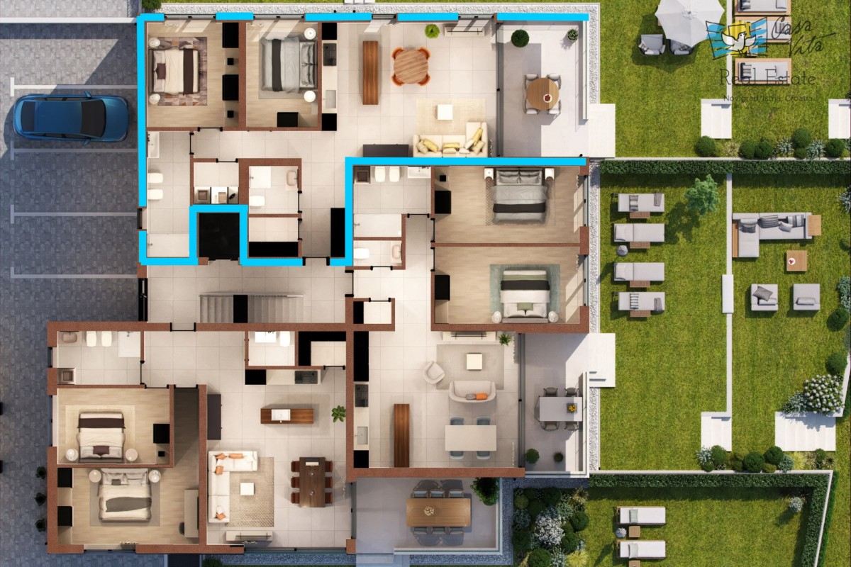 Es ist wichtig zu beachten, dass auch die Wohnungen im Erdgeschoss einen wunderschönen Blick auf das Meer haben.