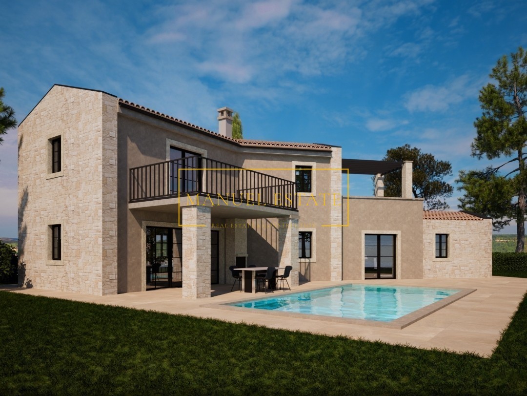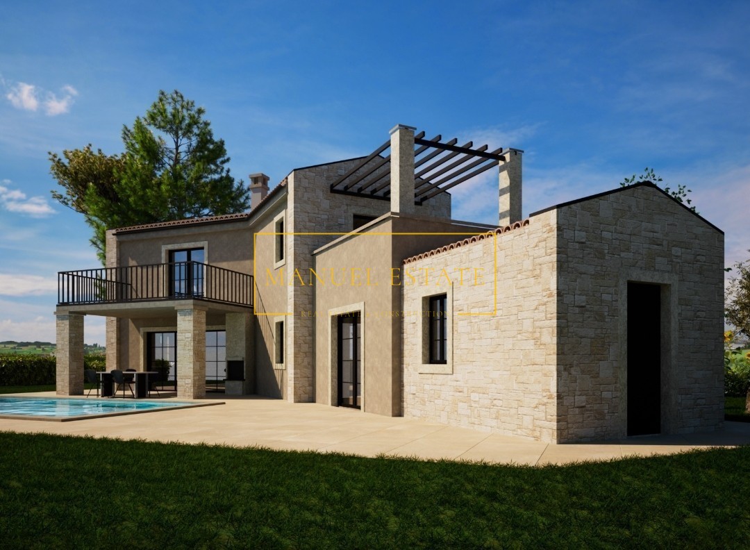 Moderne Villa im Bau, in der Nähe von Poreč, ca. 5 km vom Stadtzentrum und dem Meer entfernt. Die Villa von 172 m2 befindet sich auf einem Grundstück von 778 m2. Es besteht aus zwei Etagen; Erdgeschoss und erster Stock. Im Erdgeschoss gibt es ein Wohnzimmer mit Küche und Esszimmer, mit Glaswänden und Ausgang zu einer überdachten Terrasse, ein Schlafzimmer, ein Badezimmer, eine Toilette und einen Technikraum. Im ersten Stock befinden sich zwei Schlafzimmer, jedes mit eigenem Bad und Terrasse. Elektrische Fußbodenheizung, Klimaanlage, Möglichkeit eines Kamins, PVC-Tischlerei, Moskitonetze, Jalousien, Alarmanlage, Videoüberwachung. Sorgfältig angelegter Garten mit Swimmingpool. Parken. Geplante Fertigstellung der Bauarbeiten bis Ende 2024. Die schöne Villa ist eine perfekte Gelegenheit zum ganzjährigen Wohnen oder zur touristischen Vermietung.