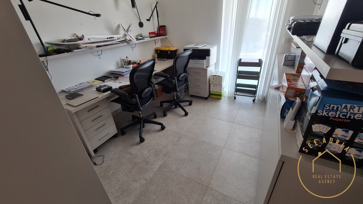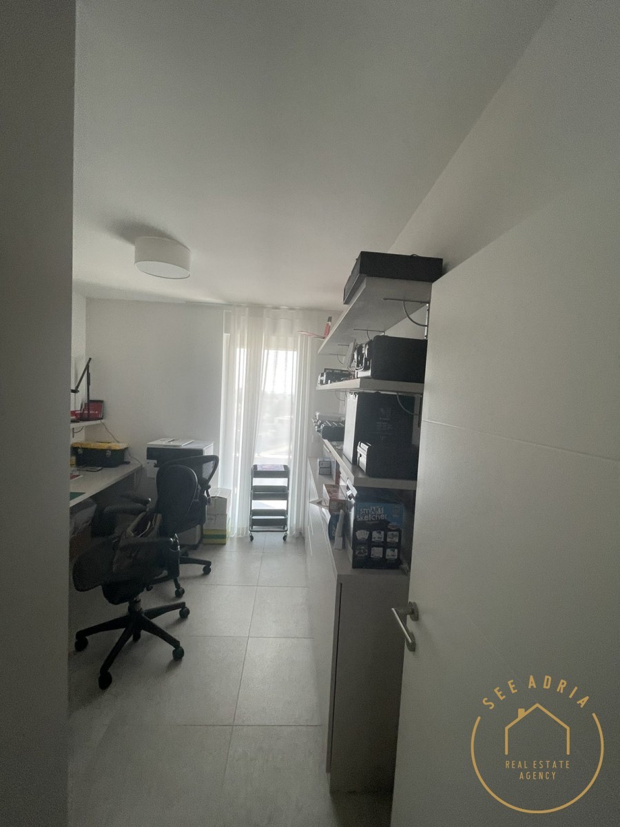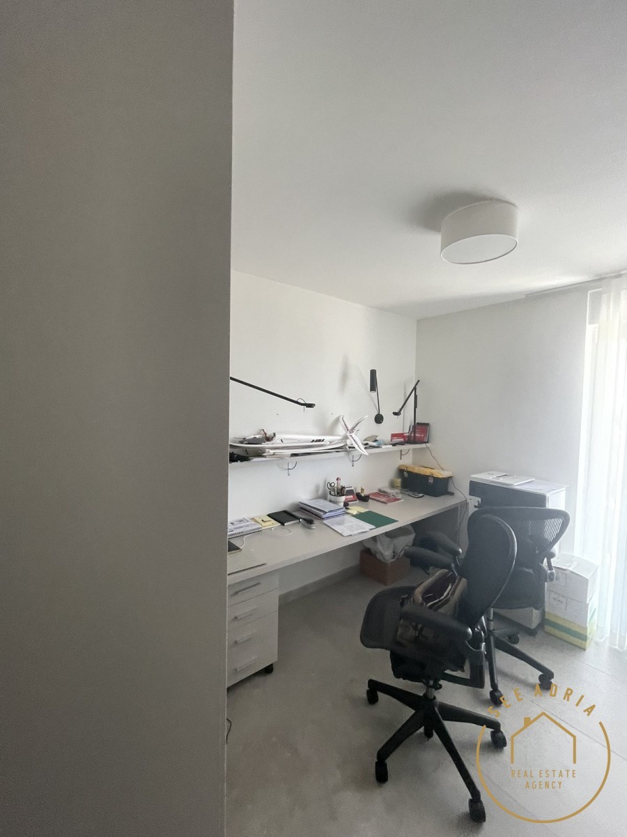 Die Wohnung besteht aus einem Wohnzimmer mit offener Küche von 44,75 m², drei Schlafzimmern, eines davon mit eigenem Bad, separaten Schränken und Abstellraum. Die Wohnung befindet sich im zweiten Stock eines Wohnhauses und hat eine Fläche von 119,95 m2.