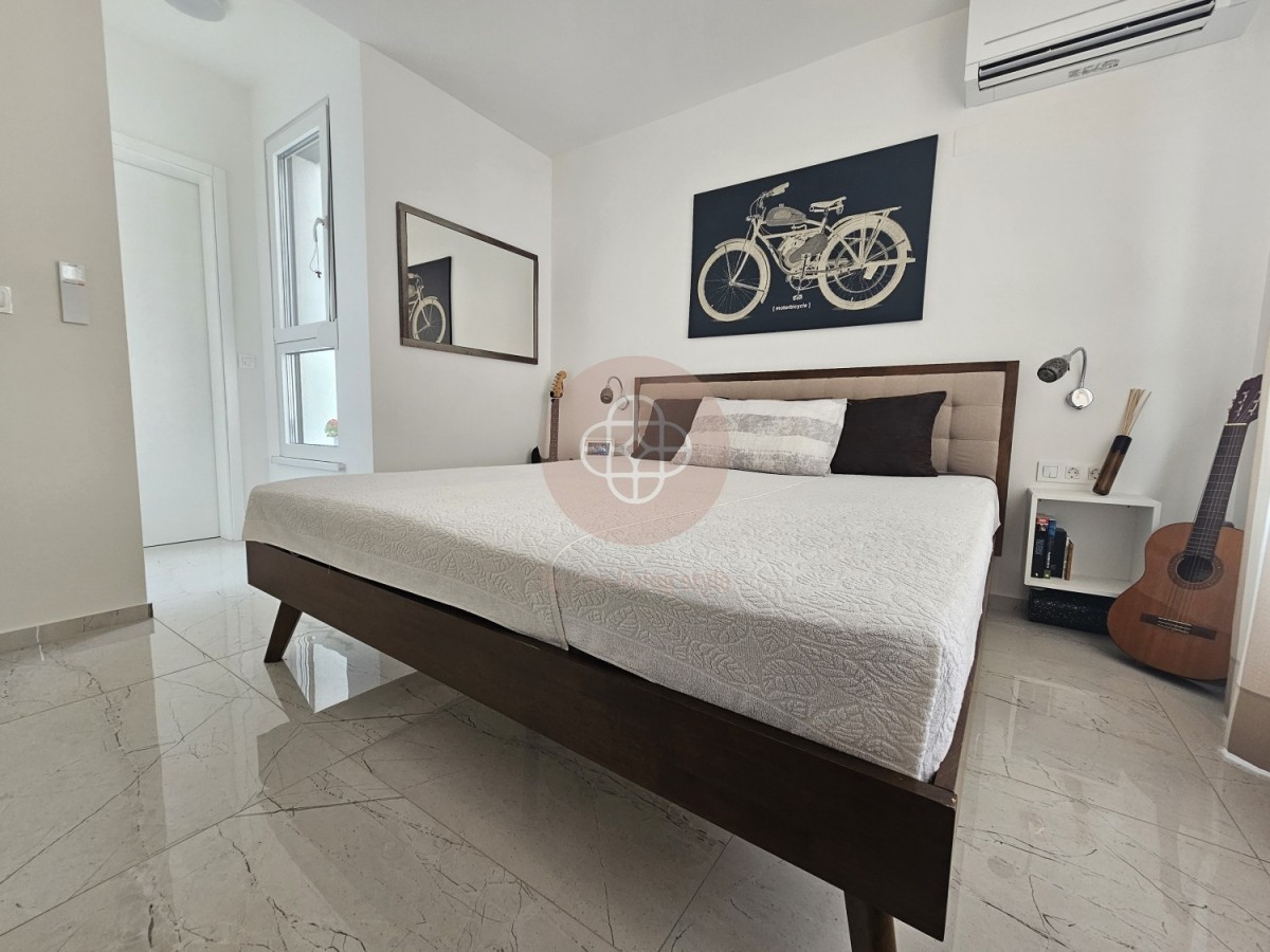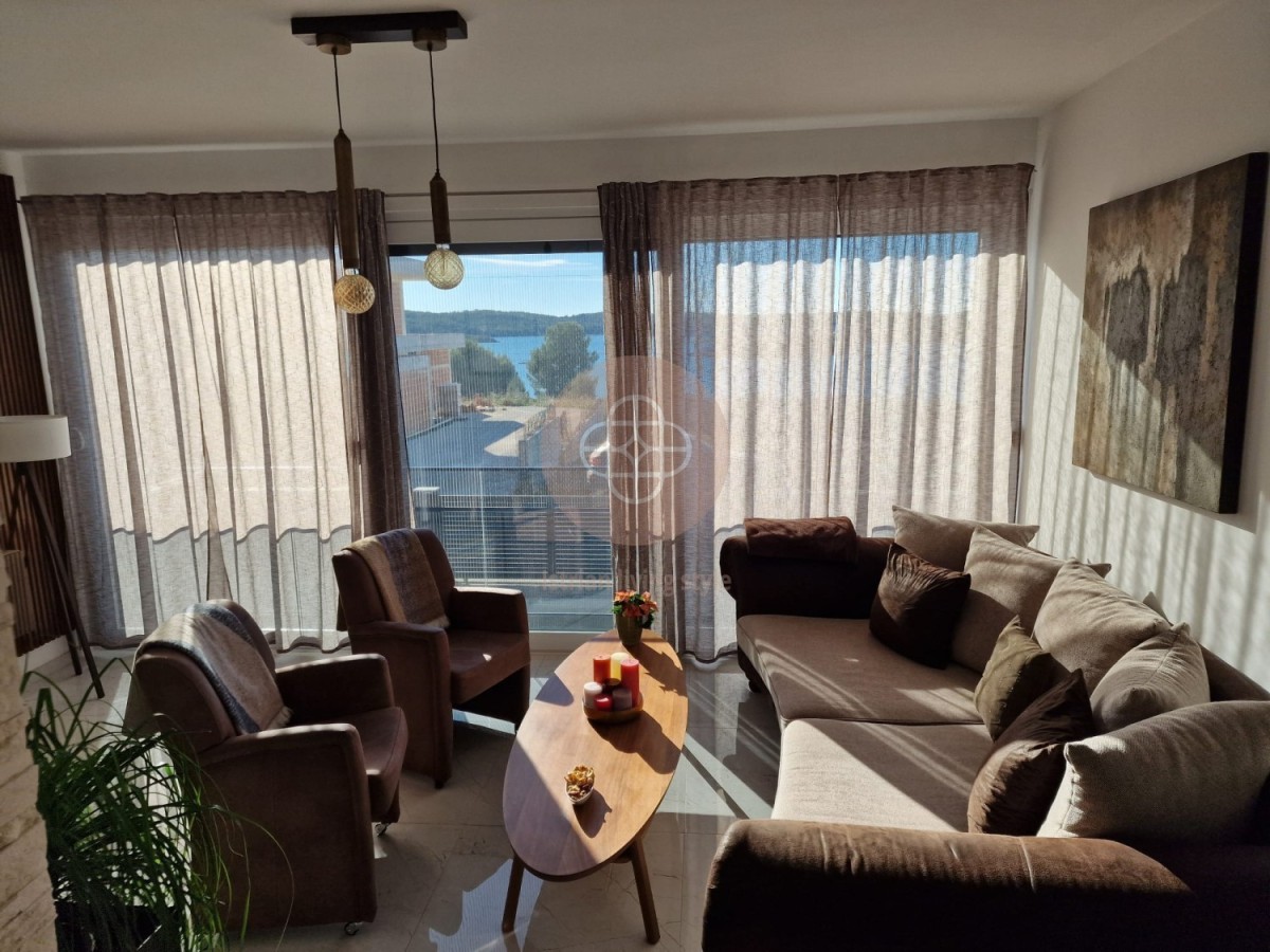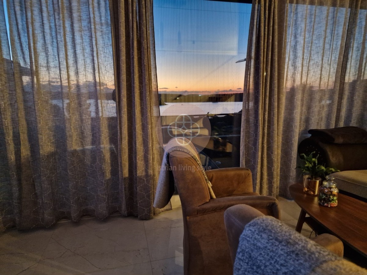 Mit ihrem stilvollen, zeitgenössischen Design überzeugt die Villa durch einen durchdachten Grundriss, der Funktionalität und Ästhetik perfekt kombiniert. Große Fenster lassen viel natürliches Licht in die Räume fluten und schaffen eine offene, luftige Atmosphäre. Gleichzeitig bieten sie einen spektakulären Blick auf das tiefblaue Meer, die ruhige Natur und die malerische Landschaft, die das Anwesen umgibt. Das großzügige Wohnzimmer, das sich harmonisch mit der Küche und dem Essbereich verbindet, ist der ideale Ort für Entspannung oder gesellige Zusammenkünfte, immer begleitet von einem unvergleichlichen Meerblick.