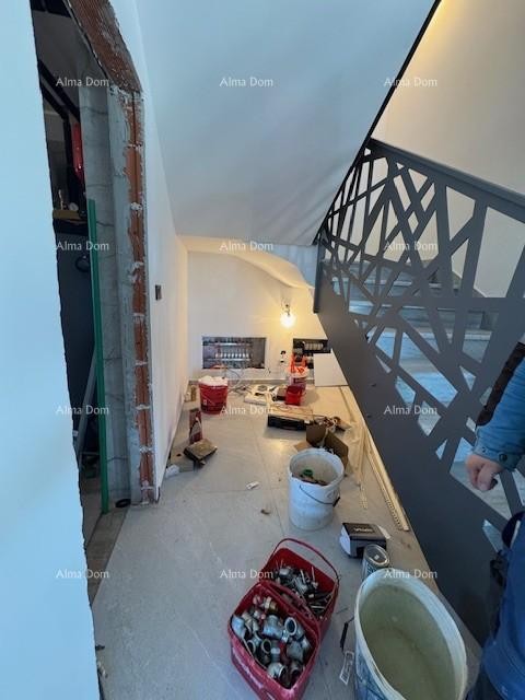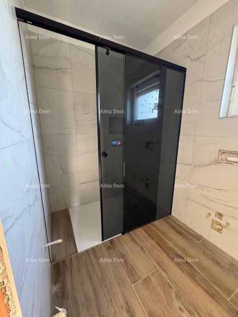 Das Haus besteht aus einem Erdgeschoss mit Küche und Wohnzimmer, einem Schlafzimmer, einem Badezimmer, einer Toilette mit Waschküche und im ersten Stock gibt es drei weitere Schlafzimmer mit angeschlossenen Badezimmern und Terrassen mit Blick auf einen fantastischen Garten mit einem Swimmingpool in eine ruhige Gegend. Teil von Šišan. Die Heizung/Kühlung des Hauses erfolgt über eine Wärmepumpe mit Fußbodenheizung und Klimaanlage in allen Räumen.