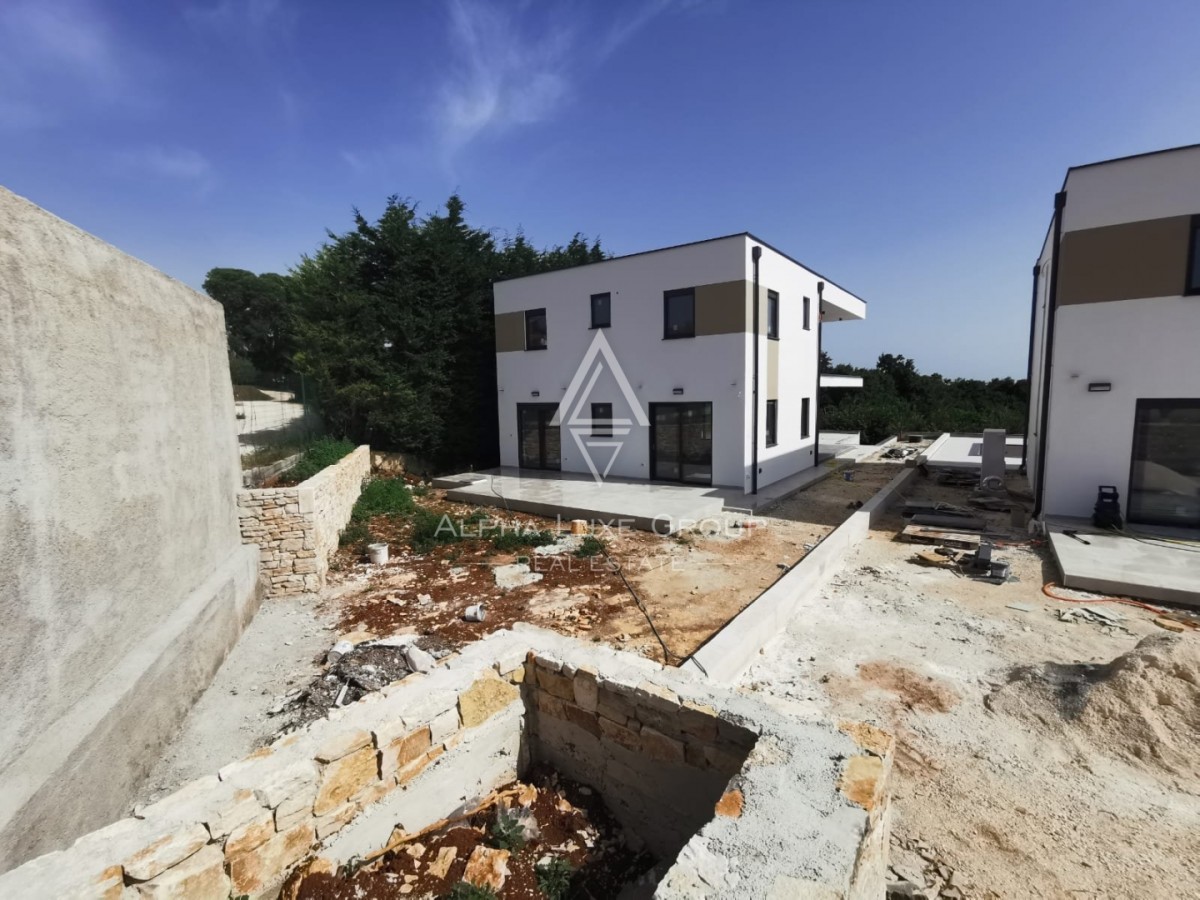 Wir freuen uns, Ihnen eine erstklassige Villa mit Pool im bezaubernden istrischen Dorf Smoljanci, in unmittelbarer Nähe zur historischen Stadt Svetvinčenat, vorstellen zu dürfen. Diese Immobilie befindet sich derzeit noch im Bau, wird jedoch komplett fertiggestellt und mit einem wunderschön angelegten Garten verkauft. Mit einer großzügigen Fläche von 200 Quadratmetern bietet die zweistöckige Villa im Erdgeschoss einladende Gemeinschaftsbereiche und im Obergeschoss vier Schlafzimmer, jedes mit eigenem Badezimmer. Das moderne Design der Villa, gekennzeichnet durch ein flaches Dach und große Fenster, sorgt für einen reichlichen Lichteinfall und bietet atemberaubende Aussichten auf die malerische Landschaft von Zentral-Istrien. Ausgestattet mit den neuesten Heiz- und Kühltechnologien und gebaut aus den feinsten Materialien, wird erwartet, dass diese Immobilie bis 2022 fertiggestellt wird.