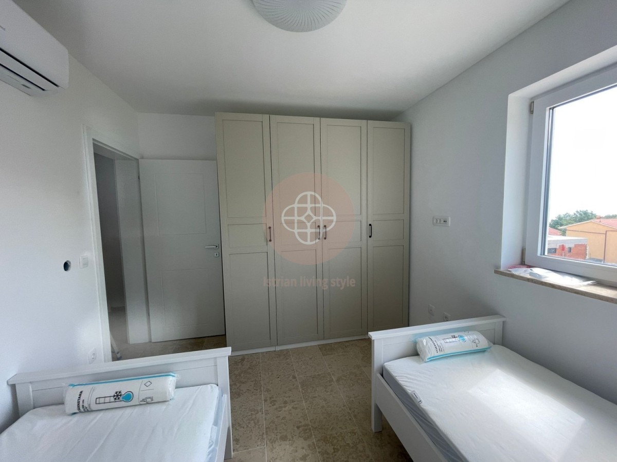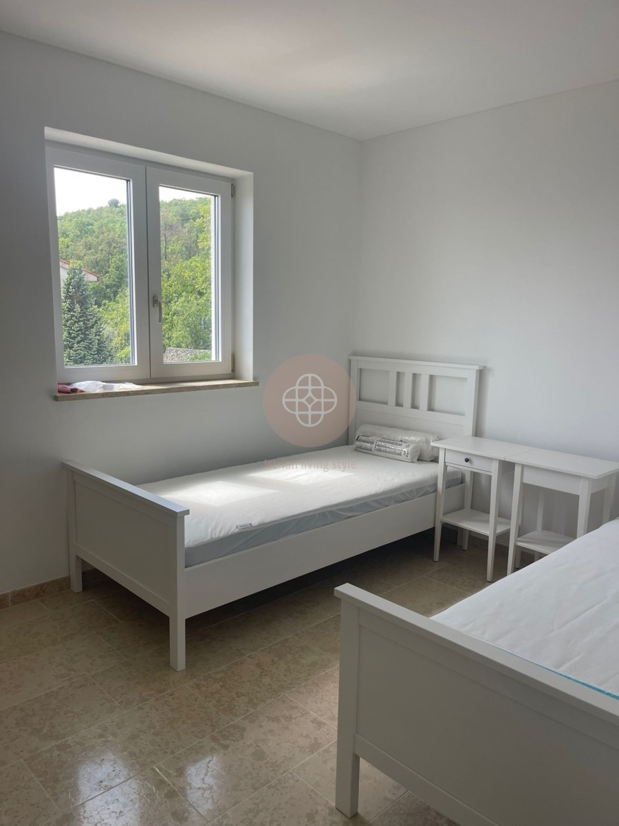 Haben wir Ihr Interesse geweckt? Der Blick ist umwerfend – auf die umliegenden Inseln, bis Rijeka und die Insel Krk. Der nächste Strand ( Ravni ) nur 5 Autominuten entfernt. Es ist ein Ort zum Ankommen, Ruhe und dennoch ist man in wenigen Minuten in der Stadt Labin mit allen Einkaufsmöglichkeiten, in einer Stunde erreichen Sie Pula.