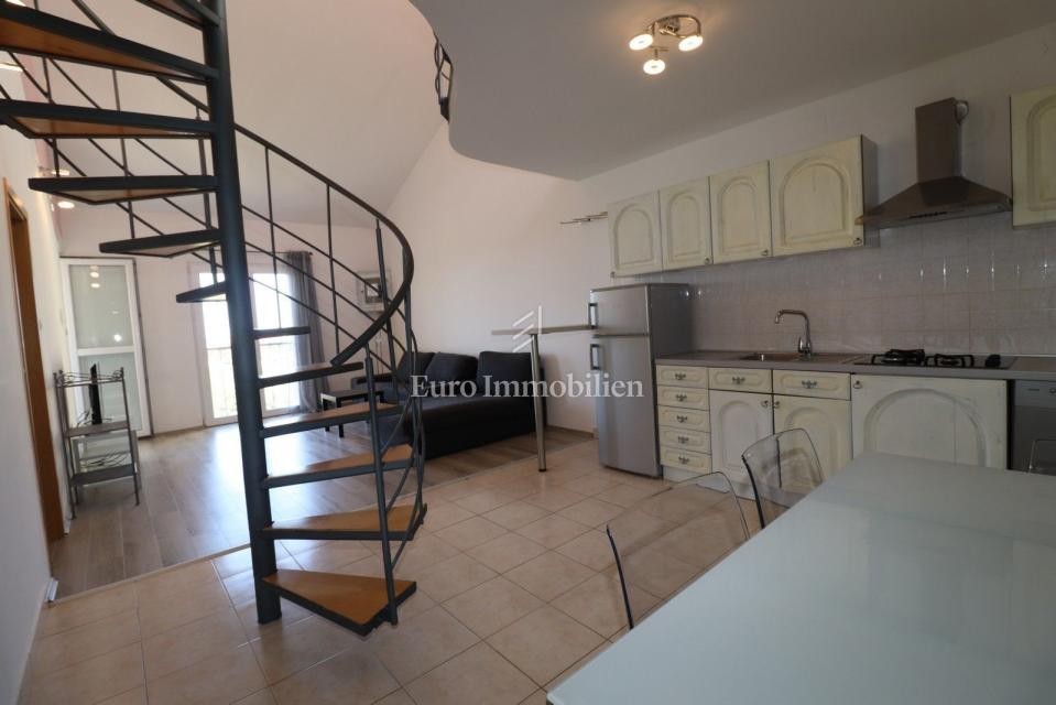 Die Maisonette-Wohnung befindet sich im obersten Stockwerk (3. Stock) des Gebäudes, nur 200–300 Meter vom Meer und dem Stadtzentrum entfernt.