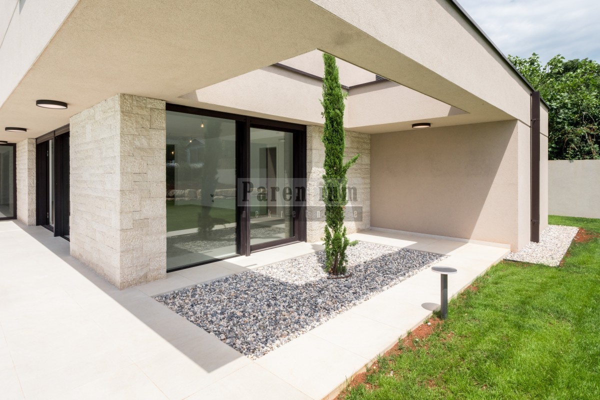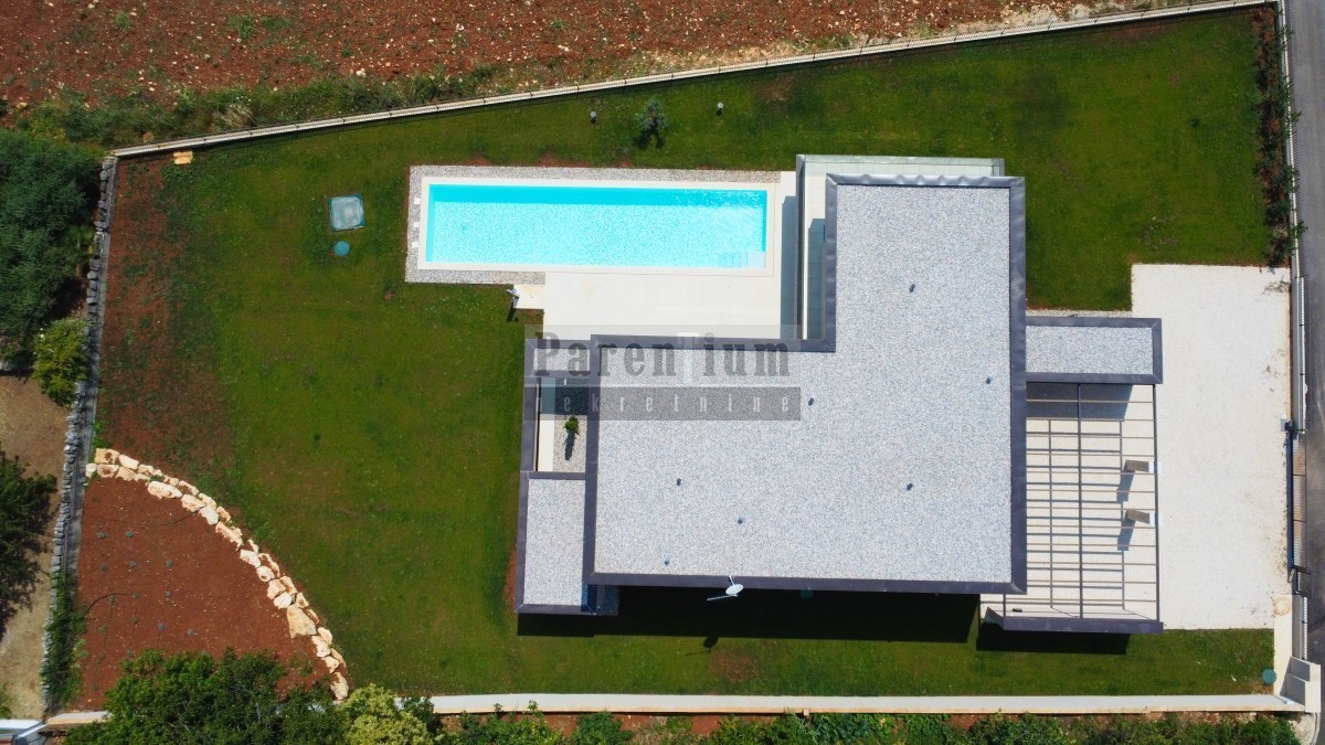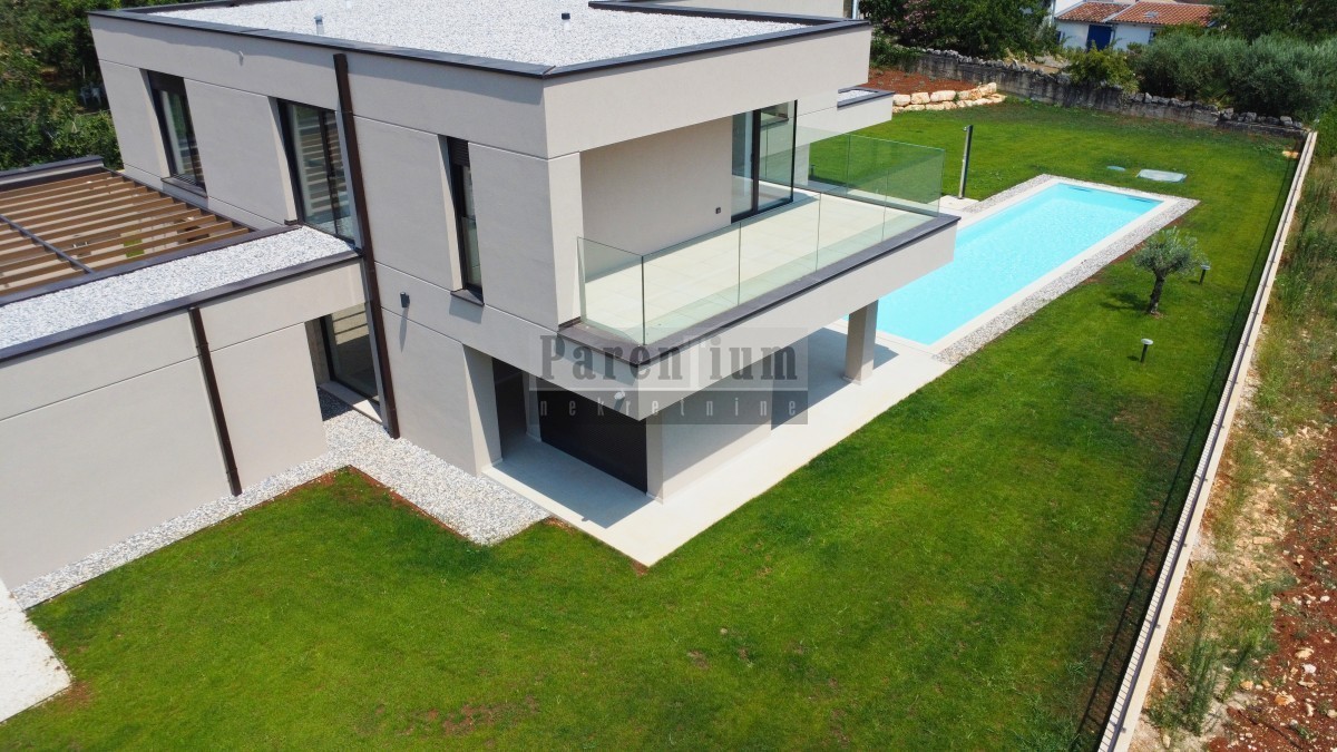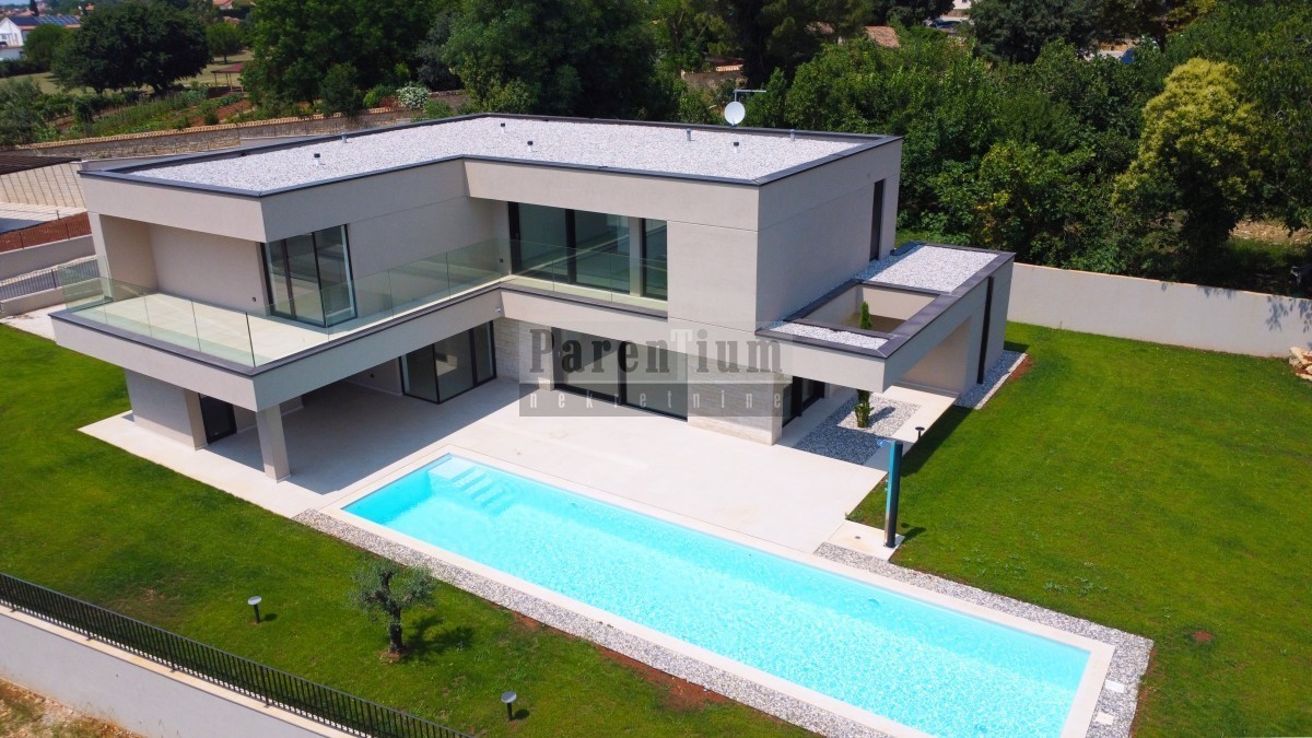 Diese wunderschöne moderne Villa liegt zehn Minuten Fahrt von der Stadt Poreč und dem Meer entfernt.