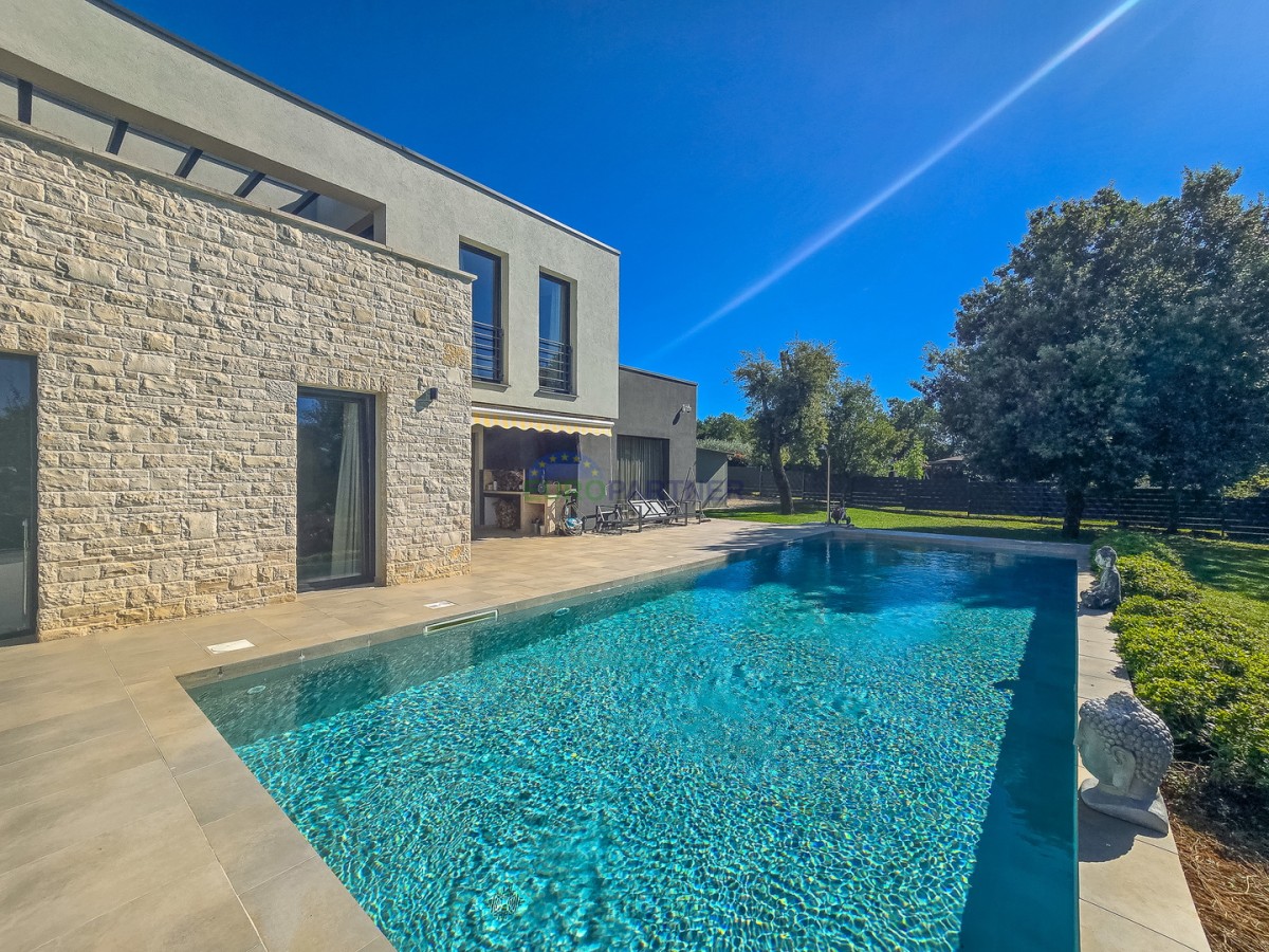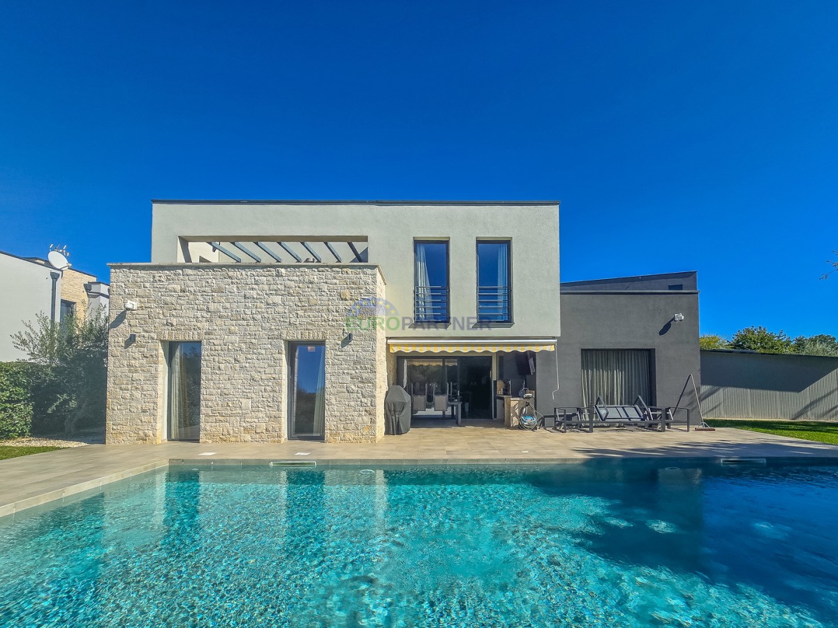 Die perfekte Mischung aus moderner Architektur und mediterraner Umgebung sind die Hauptmerkmale dieser Villa, die wir Ihnen präsentieren. Die Villa befindet sich am Stadtrand von Porec, nur 2 km vom Strand und dem Zentrum entfernt, aber weit genug weg von Menschenmassen und Stadtlärm. Es ist als Familienvilla konzipiert, die strengste funktionale und ästhetische Kriterien erfüllt. Die Villa besticht durch ihre raffinierte Eleganz – gerade Linien und warme, entspannende Farben verleihen dieser Villa einen außergewöhnlichen Charme.