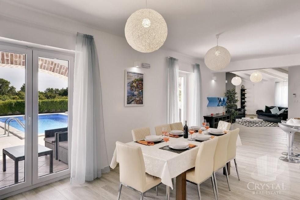 Schöne Villen mit Meerblick im Zentrum von Medulin, auch in der Nähe von Pula.Jeder Villa ist 220 qm groβ. Es besteht aus Wohnzimmer, Küche, Essbereich, 4 Schlafzimmer, 2 Balkone und 3 überdachte Terrassen.