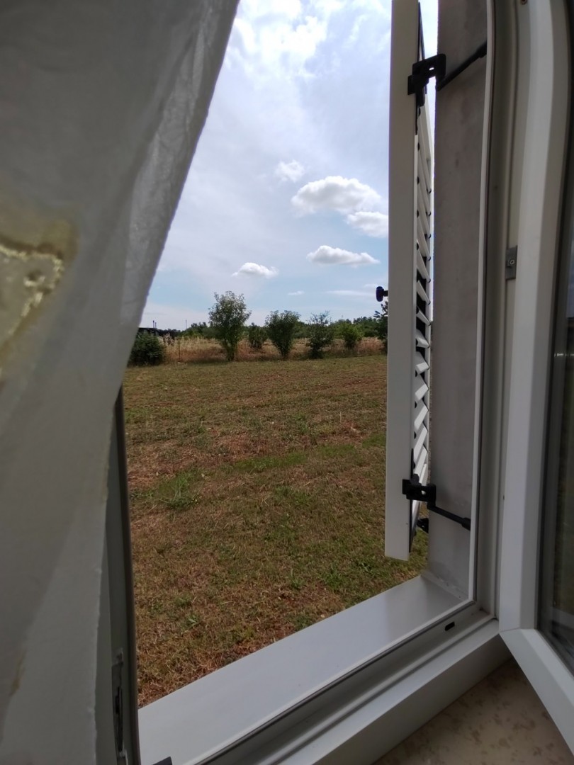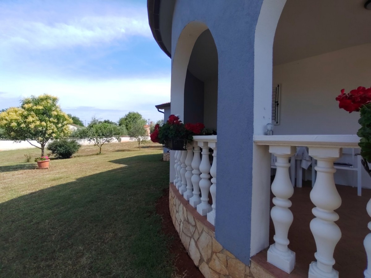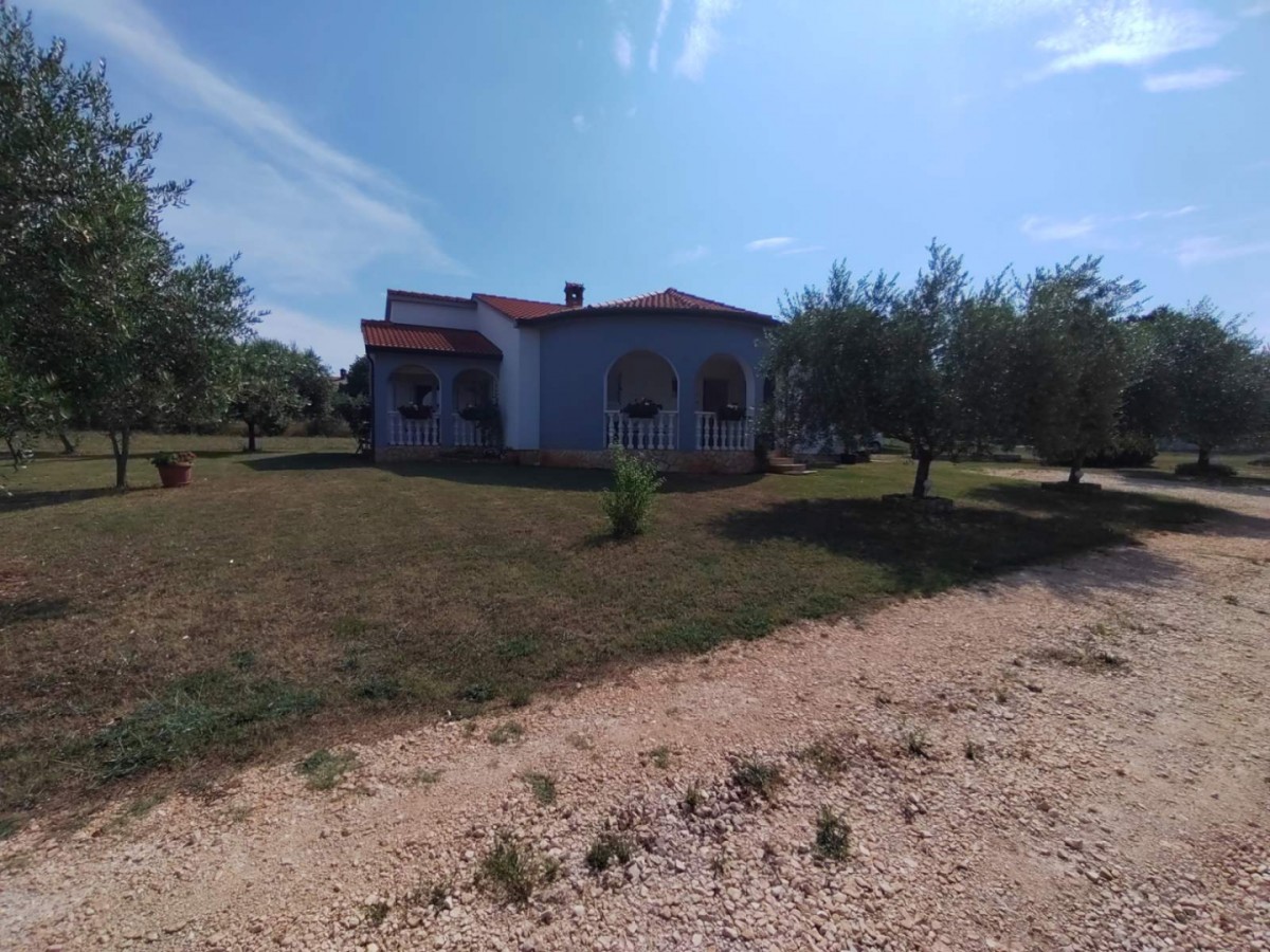 Der große Garten von über 5000 m2 ist mit Olivenbäumen, Blumen und Kräutern aus der Region Istrien angelegt. Das Haus hat eine eigene Zufahrt und ist umgeben von landwirtschaftlich genutzten Flächen, die absolute Privatsphäre bieten.