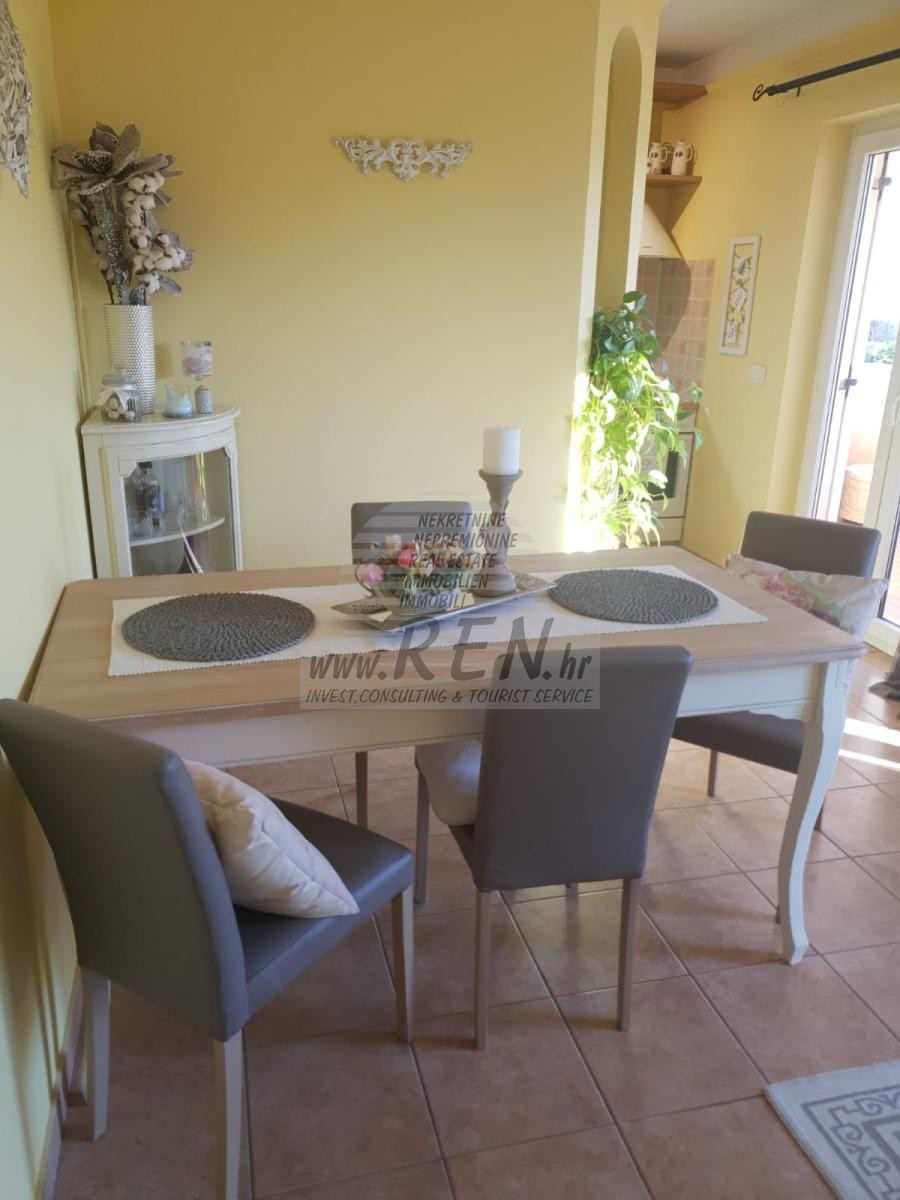 Wohnung in der Nahe von Novigrad haben insgesamt 63,76 m2. Die Wohnung befindet sich auf der Erdgeschoss, erbaut im Jahre 2005, nur 5 min. (2000m) vom Meer und schönen Stränden, 10 min. (6000 m) sind Sie vom Stadtzentrum Umag entfernt. Die Wohnung besteht aus Küche, Wohnraum, Badezimmer, 2 Schlafzimmer, Terrasse. Es ist ausgestattet mit Klimaanlage, verkauft mit Möbeln, Parkplatz.