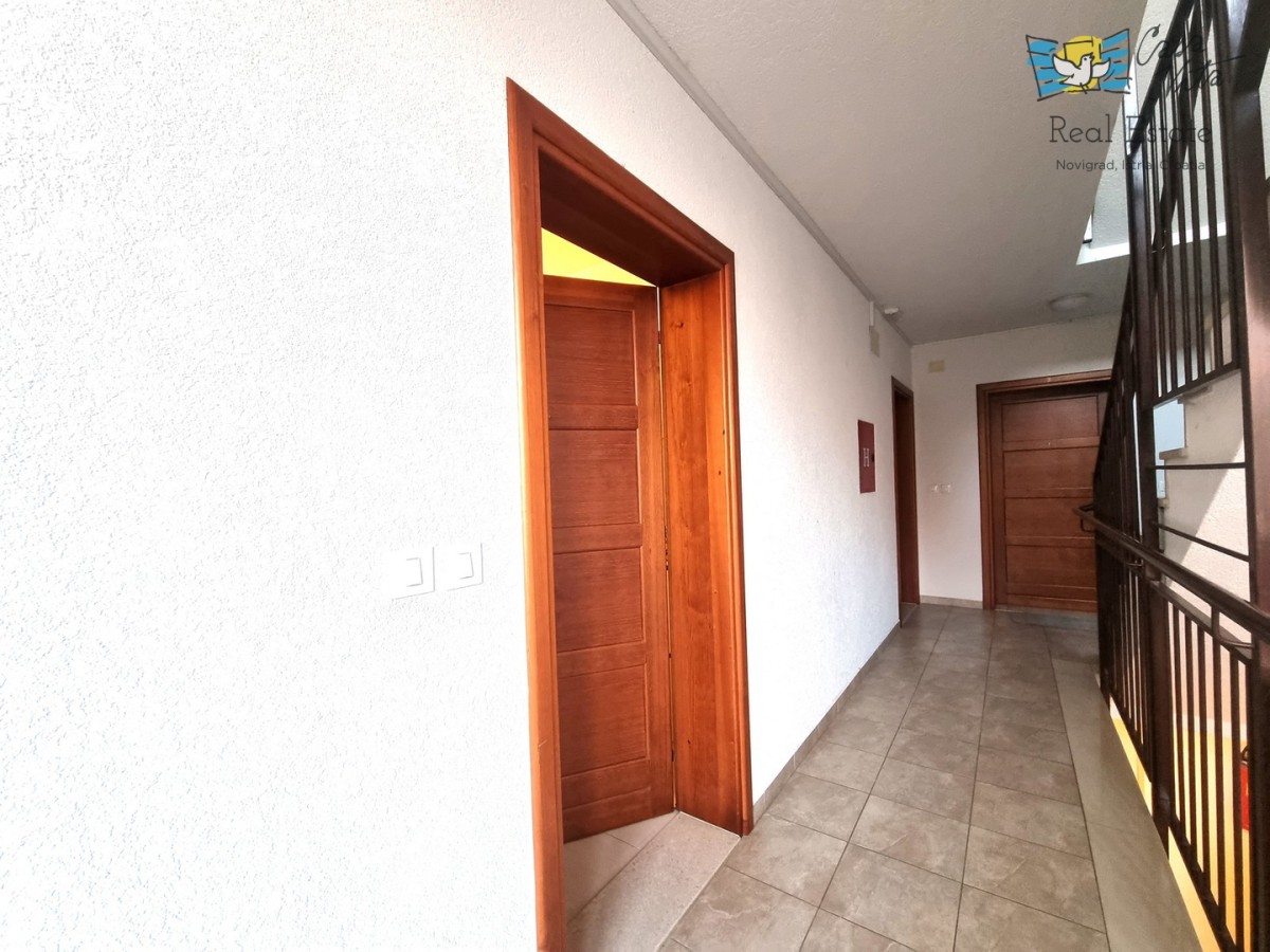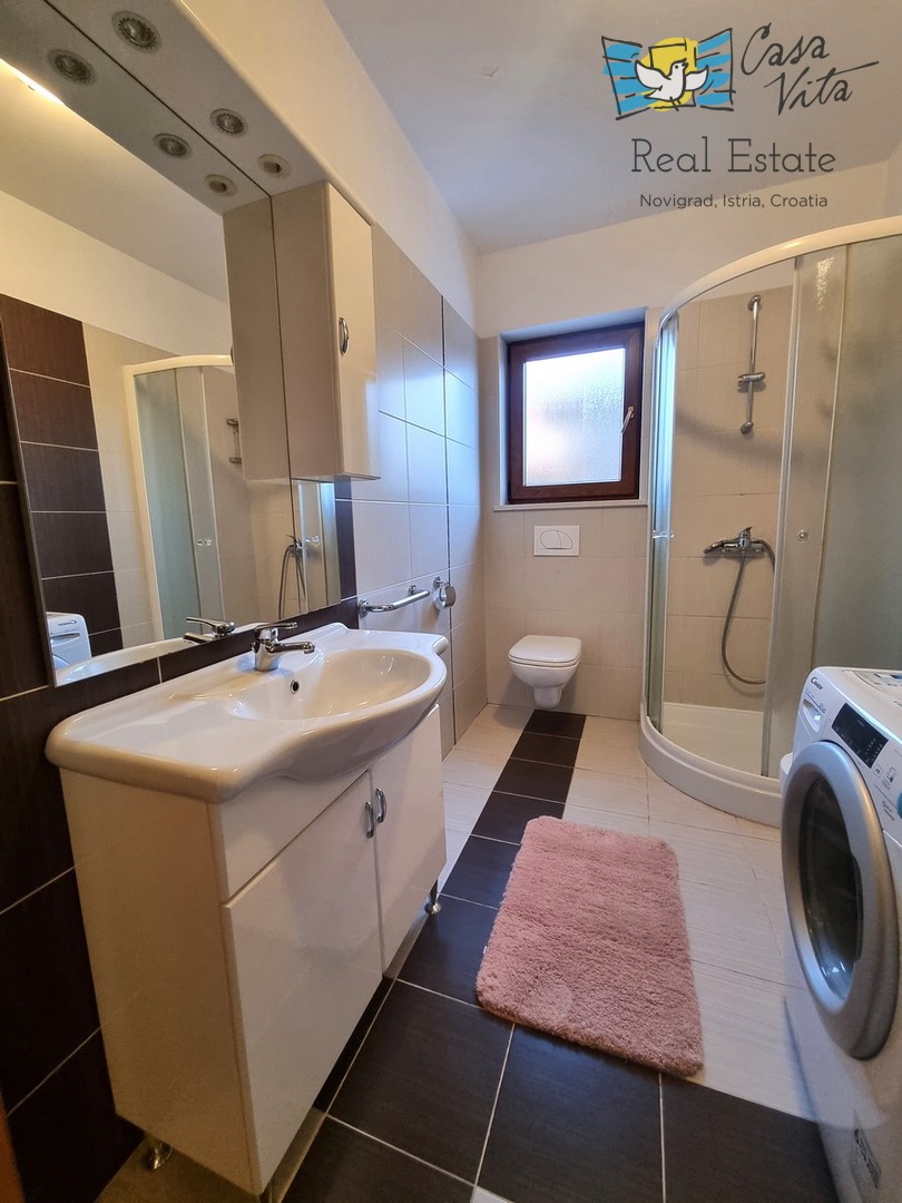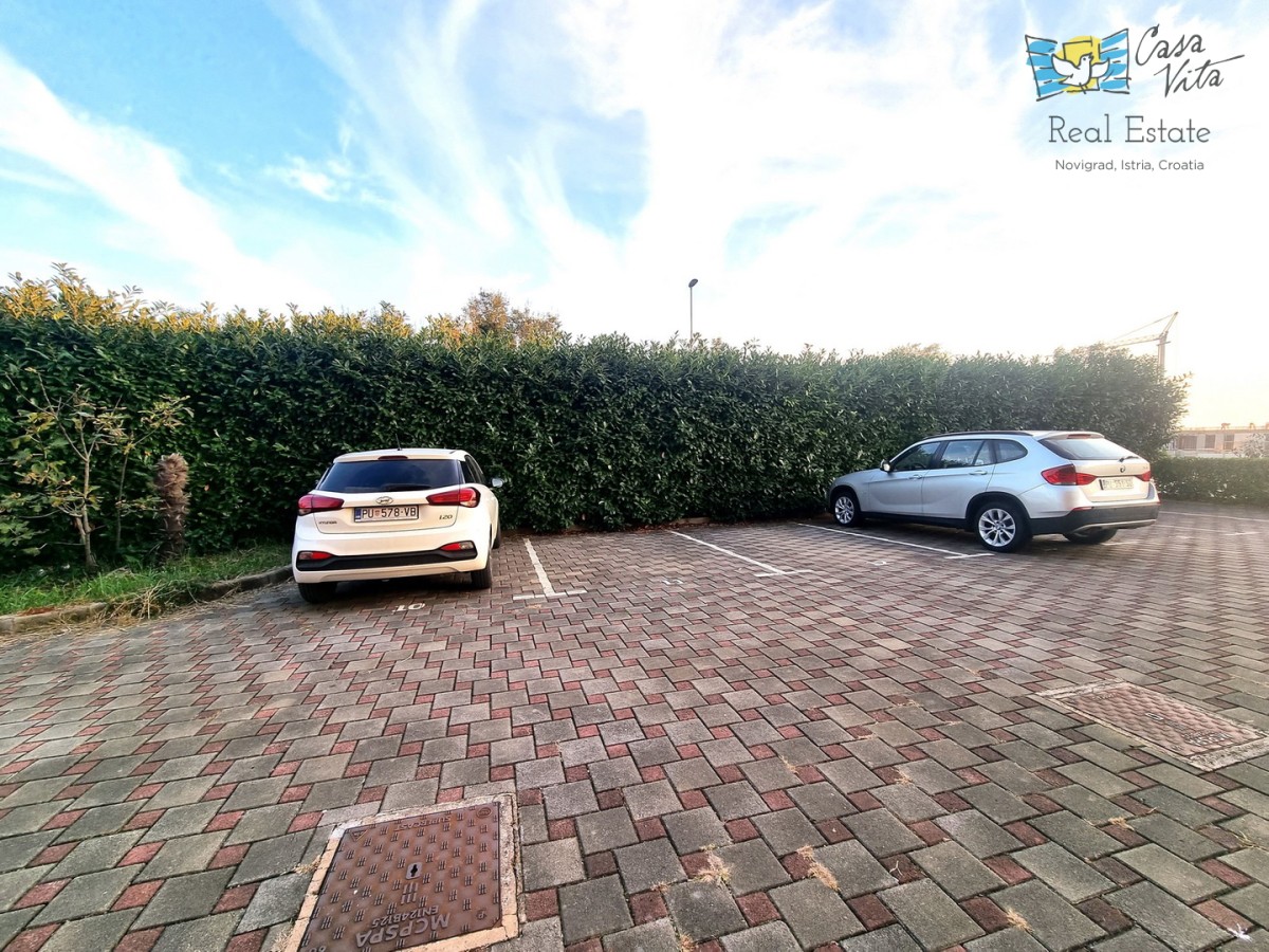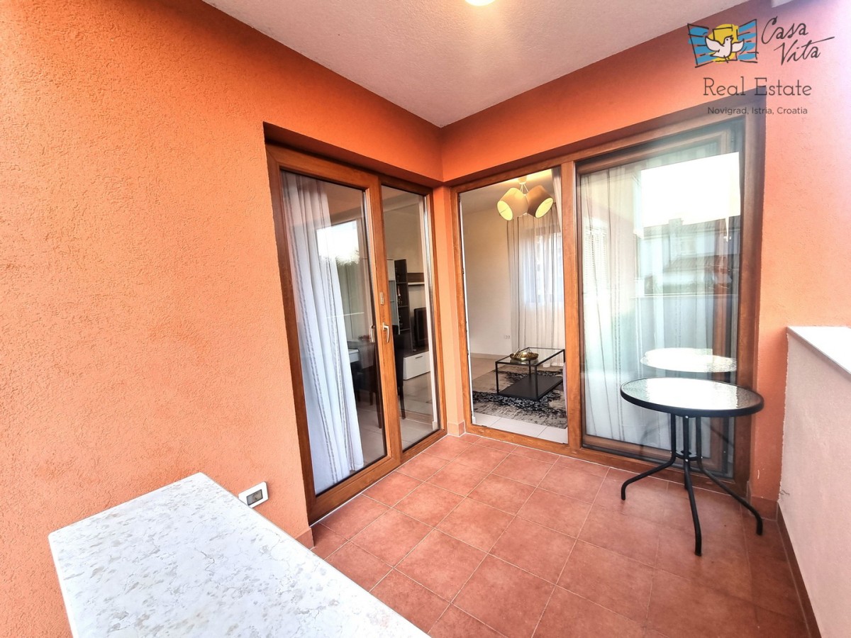 Eine kleine Wohnung zum Verkauf, eine Wohnung von 42,70 m2, befindet sich im Erdgeschoss eines Gebäudes unweit des Zentrums von Novigrad und gepflegter Strände. Das Gebäude wurde 2009 erbaut. Es ist komplett ausgestattet und dekoriert und wird als solches verkauft. Es besteht aus einer Eingangshalle, einem Badezimmer, einem Schlafzimmer, einer Küche mit Esszimmer und einem Wohnzimmer mit Zugang zur Terrasse. Von der Terrasse gelangen Sie direkt zum Parkplatz. Zur Eigentumswohnung gehört kein Garten. Zur Wohnung gehört ein Parkplatz und ein Abstellraum im Keller des Gebäudes. Die Wohnung ist ideal für 1-2 Personen, für gelegentlichen oder dauerhaften Aufenthalt.