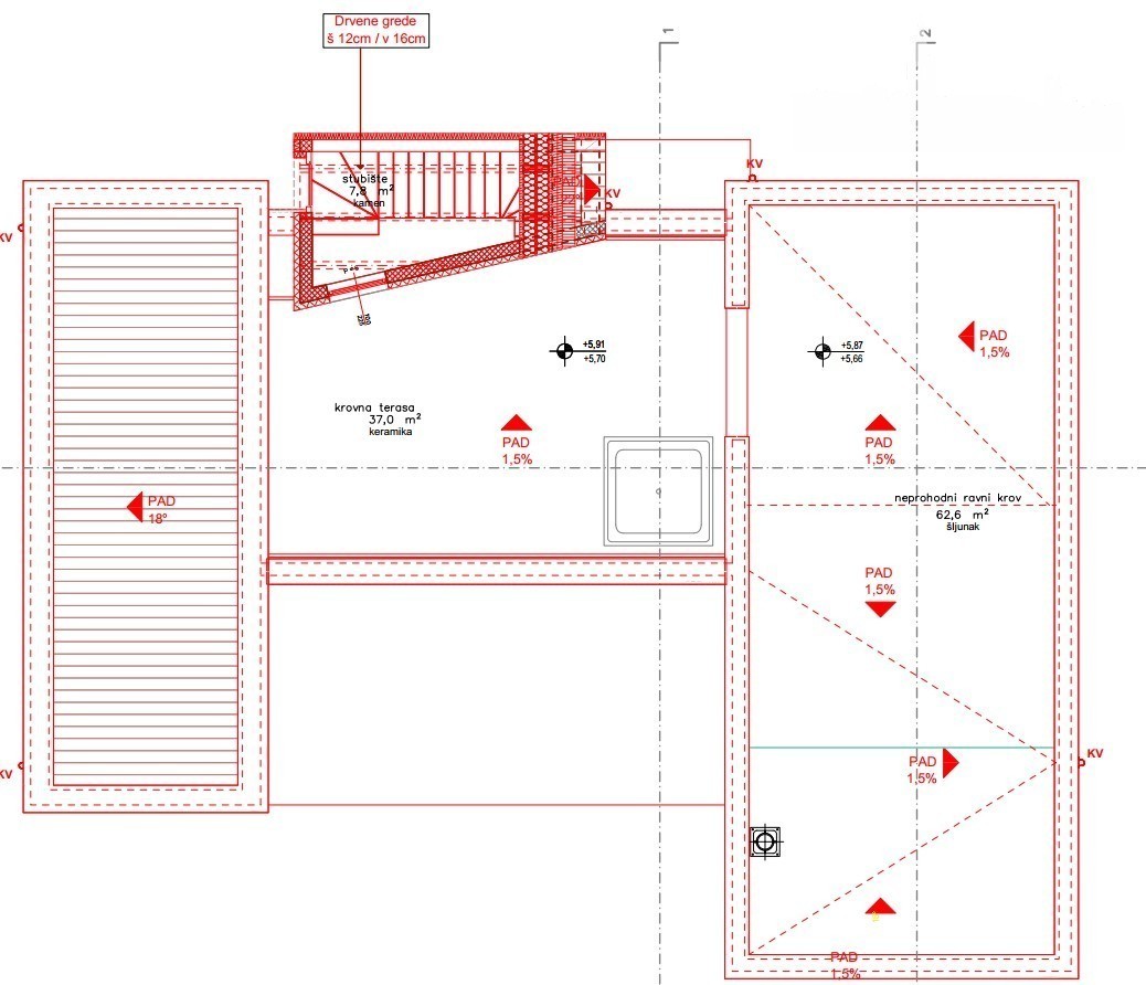 Außentreppen führen zur Dachterrasse von 37 m², die einen Whirlpool und einen Aufenthaltsbereich bieten wird.