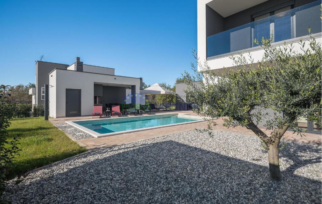 Diese wunderschöne moderne Villa befindet sich in einem ruhigen Ort in der Nähe von Poreč, einem der attraktivsten Ziele Istriens. Sie liegt in einer Einbahnstraße, die absolute Privatsphäre und Ruhe garantiert, und ist von neuen, modernen Häusern umgeben. Die Villa wurde 2023 erbaut und besticht durch ihr elegantes Design, helle Räume und hochwertige Ausstattung.