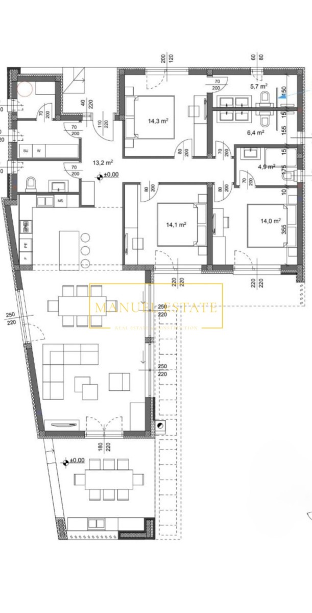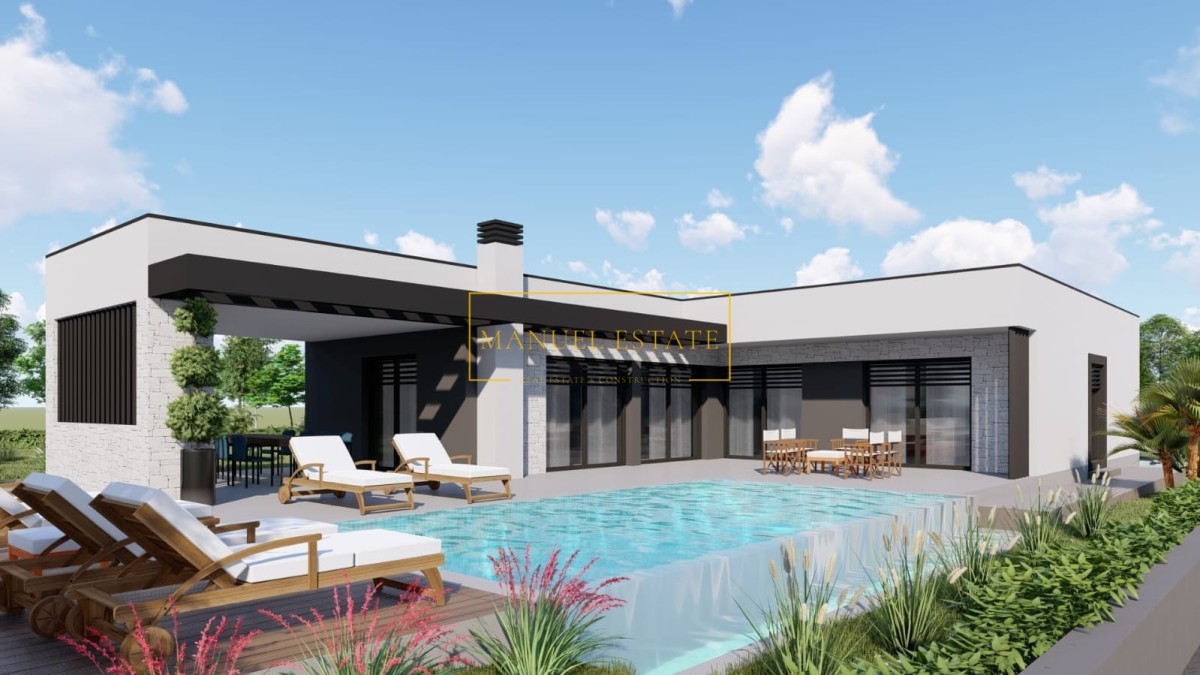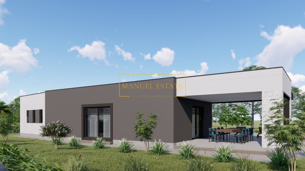 Dieses Einfamilienhaus, das sich derzeit im Bau befindet, hat eine Nettofläche von 140 Quadratmetern und wurde mit dem Fokus auf Komfort und Funktionalität entworfen. Der Eingangsflur führt zu einem großzügigen Wohnbereich, der aus einer Küche, einem Esszimmer und einem Wohnzimmer besteht, perfekt für Familienzusammenkünfte und Entspannung. Vom Wohnzimmer aus gelangt man auf eine überdachte Terrasse mit einer Sommerküche, die ideal ist, um warme Sommerabende zu genießen, zu grillen und Zeit mit Familie und Freunden zu verbringen.