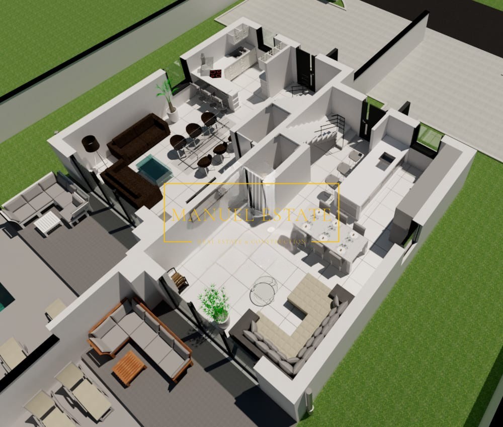 Das Haus wird sich über zwei Etagen erstrecken. Im Erdgeschoss wird es ein WC, eine Küche mit Essbereich und ein großzügiges Wohnzimmer geben, das mit einer überdachten Terrasse von 19 m2 verbunden sein wird – ideal, um das mediterrane Klima zu genießen. Im Obergeschoss werden drei Schlafzimmer und zwei moderne Badezimmer untergebracht, was diese Immobilie zu einer idealen Wahl für eine Familie macht.