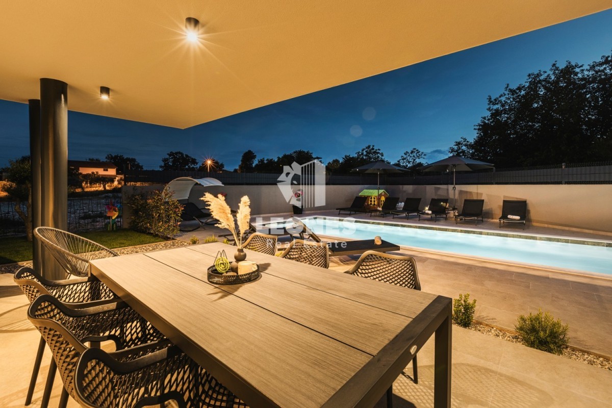 This beautiful detached house with a swimming pool is located in a quiet neighborhood near the town of Umag.