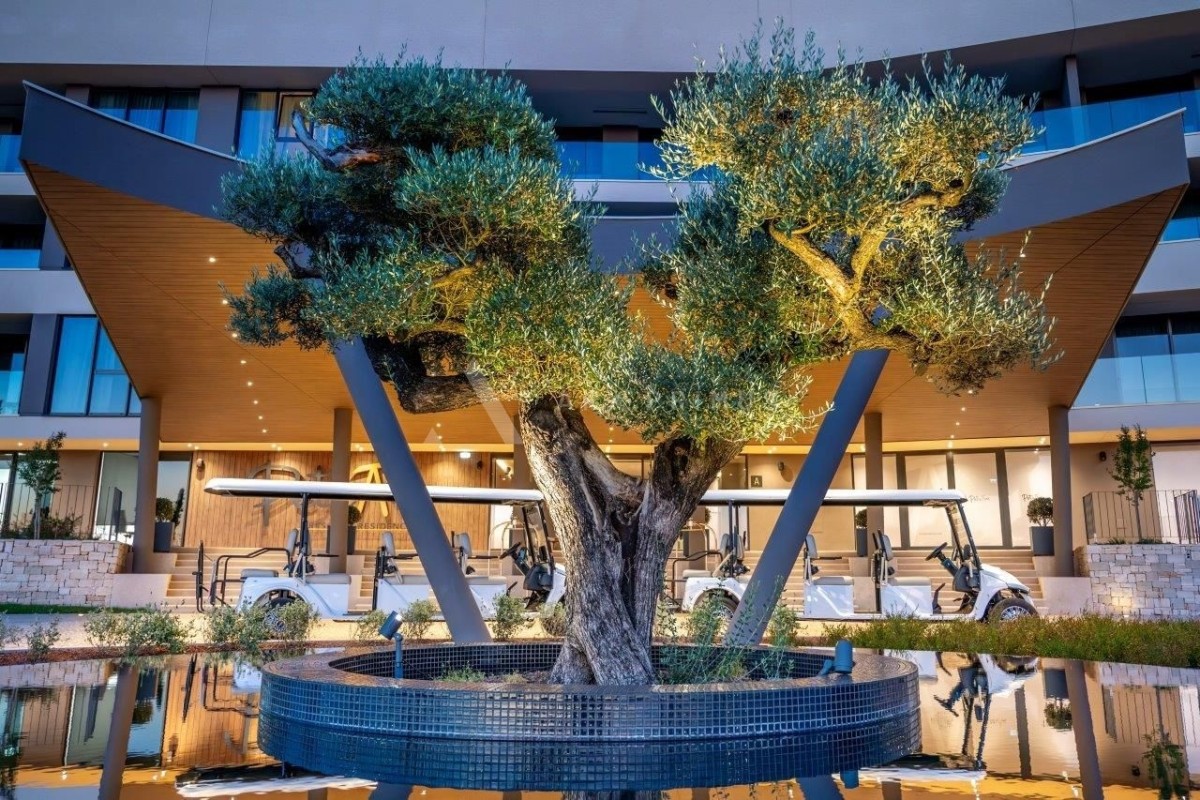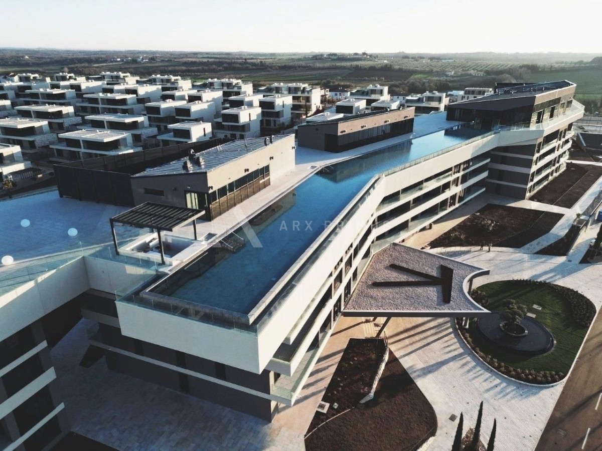 In a secluded location surrounded by the sea,The elite settlement is located close to all urban, rural and tourist facilities of northwestern Istria.As part of the resort, in the main building with all amenities and the largest rooftop pool in Europe, there is a luxury apartment on the 3rd floor. The apartment consists of bedroom, bathroom, open living room and kitchen with fantastic views, balcony with open views of the sea, Istria, Slovenia and the Italian Alps, parking space.The resort offers a number of facilities and services that ensure a carefree life and rest:24h surveillance, Maintenance service, Concierge, Transfers (by road or sea) from Venice, Pula, Rijeka and Trieste, Caretaker on site, Electric buggy - free transfer to the nearby beach, Electric car charging station, Restaurants and Cafes by the pool, Gym and Sports facilities, Shopping on site, Luxury restaurant on the roof terrace of the aparthotel (main building), Wellness & SPA, Swimming pools with facilities for children, Kids playground, Babysitting service on request, Private chef service on request, Infinity pool 105m long on the roof terrace level (second largest in the world!), Indoor part of the pool at the level of the roof terrace, Private beach with bar, Pool at ground level (garden pool), Children's pool at ground level