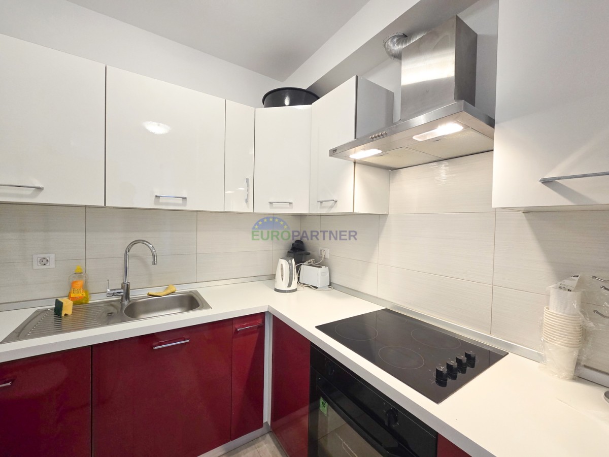 The apartment also has its own garden of 110m2. The garden is located on both the front and back of the building, and in the front garden there is a swimming pool for complete enjoyment on hot summer days. The garden on the back of the building is perfect for relaxing and socializing during the hottest months.