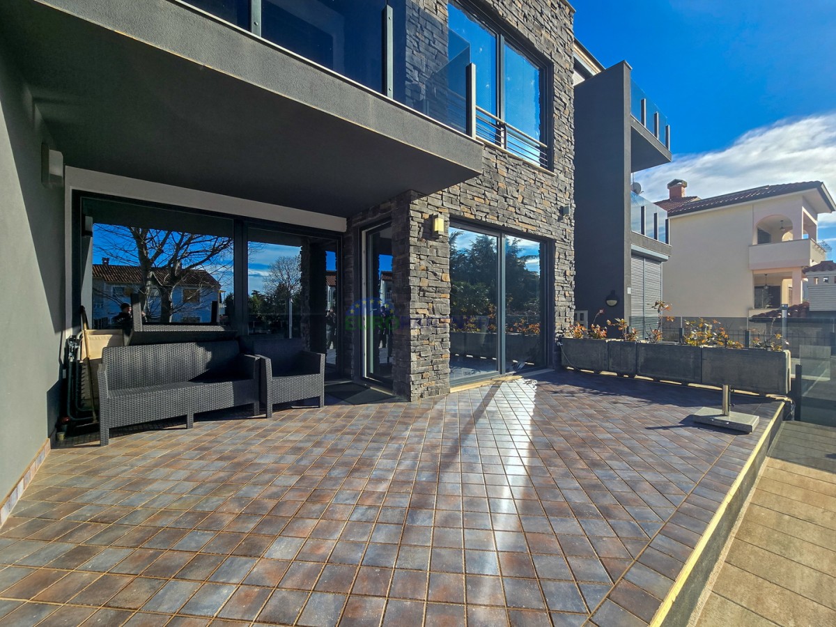 A beautiful luxury apartment with a swimming pool is for sale near Poreč. The apartment is located in a quiet residential area 5km from the center of Poreč and 3km from the first beach.