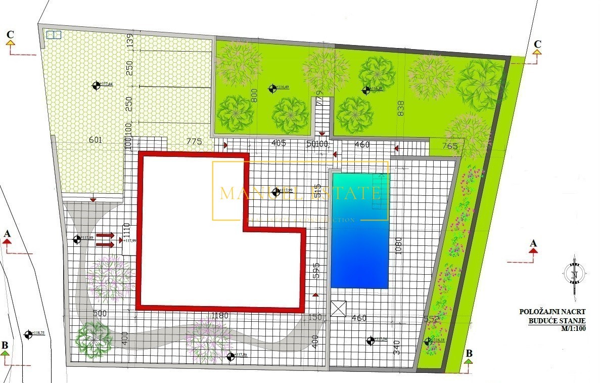 A detailed project has been prepared for the construction of a modern house with a swimming pool, and the complete documentation for obtaining the building permit has already been submitted, significantly speeding up the realization of your future home or investment project.
