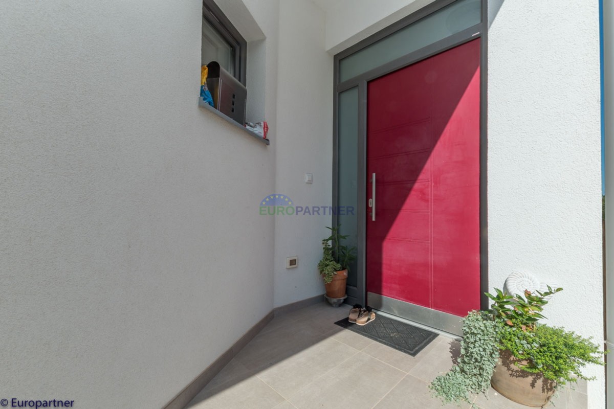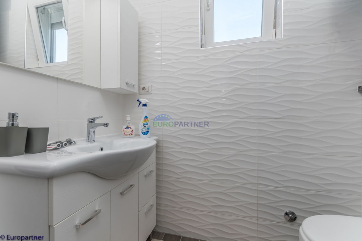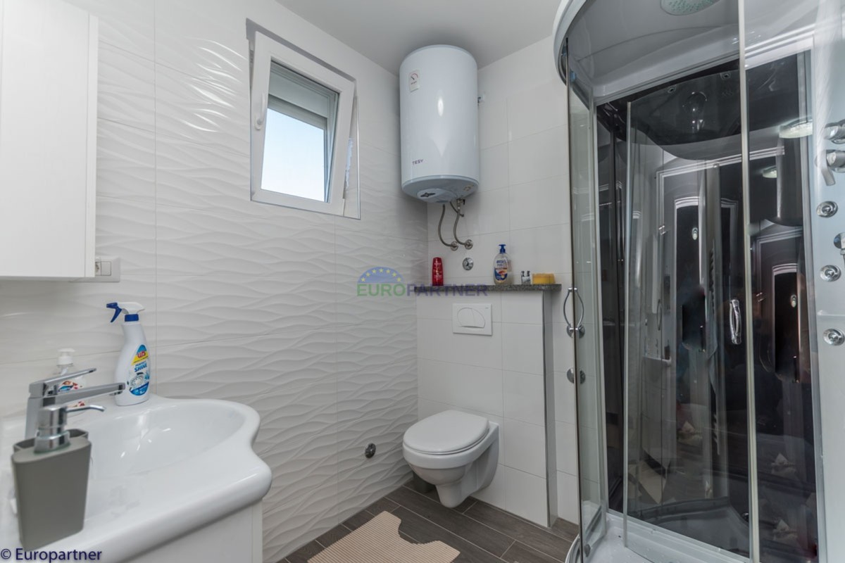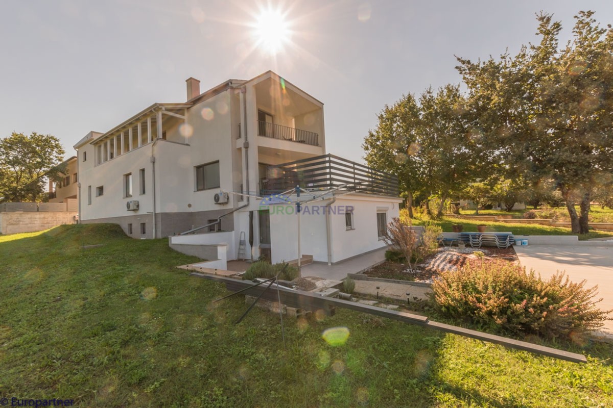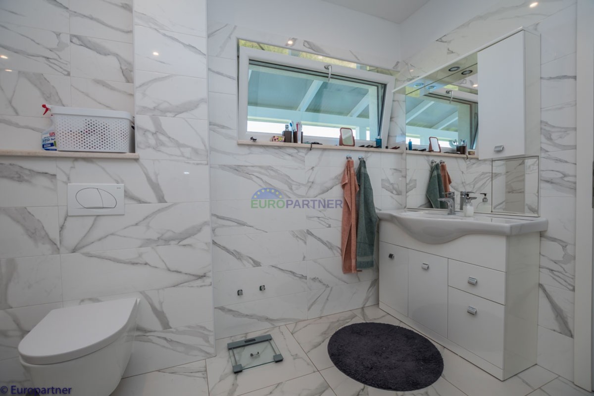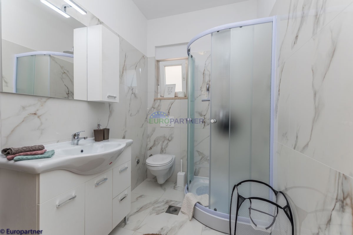 This unique modern villa was designed in such a way that it consists of several residential units that offer a truly beautiful view of the sea. The villa covers 570 m2 and a 1360 m2 plot. Since technology is an integral part of our everyday life today, it has been present in our houses in recent years as well. This villa was built according to the principle of a smart house. A smart home is a home that can be managed and controlled using smartphone, tablet and computer applications. In this way, we can manage all smart home installations, which is why we call such installations smart installations. Smart installations include lighting, blinds, heating, security alarms or systems, ventilation and cooling systems. In short, a smart house provides control over all installation systems that enable a comfortable stay in our home. This villa was built as a smart house. There is a CD with stored information about wall installations. This villa is equipped with underfloor heating, air conditioners, the insulation of the villa is excellent. The house has a fireplace, an air recovery system. Jaustian carpentry, combination of wood, aluminum with four-layer glass. The villa consists of a large apartment of 365 m2 and three apartments located in the second part of the villa. The villa offers simplicity and practicality. On the lower floor there is a kitchen with a dining room, a spacious living room, a bathroom and a storage room. Upstairs there are three bedrooms and two bathrooms. The rooms have access to terraces with a view of the beautiful landscape and the sea. On the ground floor of the villa there is an apartment with two bathrooms, a bedroom, a living room with a kitchen and a dining room. The villa has a swimming pool that belongs to this unit. There are parking spaces for several cars in the yard. Apartment No. 1 The newly renovated apartment on the ground floor offers freshness and spaciousness - a bedroom with a comfortable bed, a living room with satellite channels, a kitchen with a dining room offers everything for a relaxing break from the busy life. The apartment has two terraces where you can drink your morning coffee in peace, read news, a book or enjoy the sunset - the large terrace has a beautiful view of the sea. The specificity of this apartment is that it is connected to the door of another apartment (Apartment No. 2) - yet separately separated. Apartment no. 2 The newly renovated apartment on the ground floor offers freshness and spaciousness - a bedroom with a comfortable bed, a living room with satellite channels, a kitchen with a dining room offers total comfort. The apartment has two beautiful terraces where you can fully enjoy it - the larger terrace has a beautiful view of the sea. The apartment is connected to the door of another apartment (Apartment No. 1) and gives the possibility of a single unit, yet separately it forms only one apartment. Apartment no. 3 The spacious newly furnished apartment on the first floor offers freshness and spaciousness - 2 bedrooms with comfortable beds, a living room with satellite channels, a kitchen with a dining room. The apartment has 2 bedrooms, 2 bathrooms, 2 terraces where you can truly enjoy peace - the larger terrace has a beautiful view to the sea. This villa is for sale fully furnished. The furniture is new and specially designed for every space. The white color spreads throughout the villa, which gives the impression of cleanliness and freshness. Upstairs there is a beautiful wooden floor. When decorating, every detail was taken care of, and the emphasis was on practicality and comfort. The villa offers an extremely beautiful view of the sea and nature. Due to the way it was designed, this villa is an excellent rental investment.
