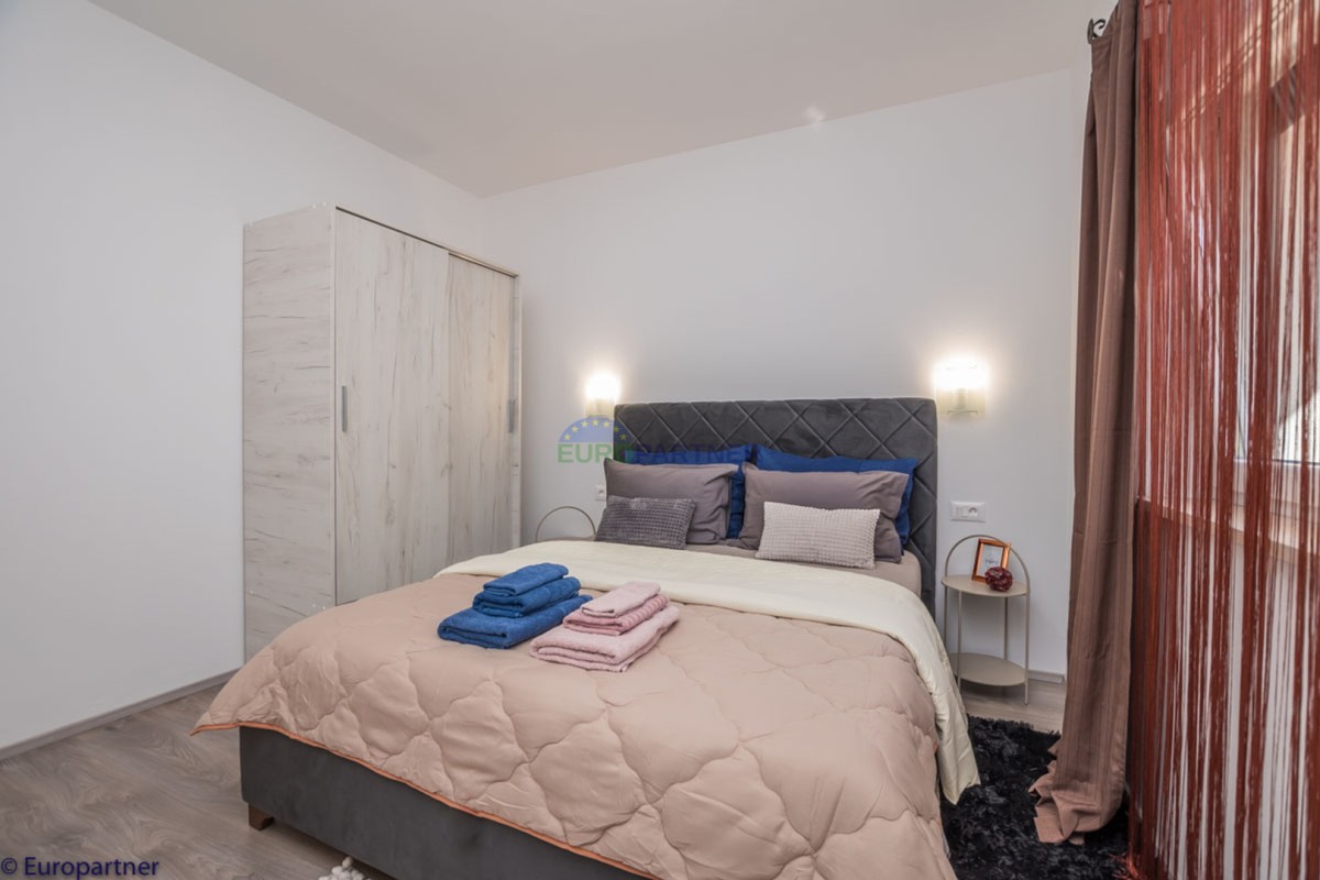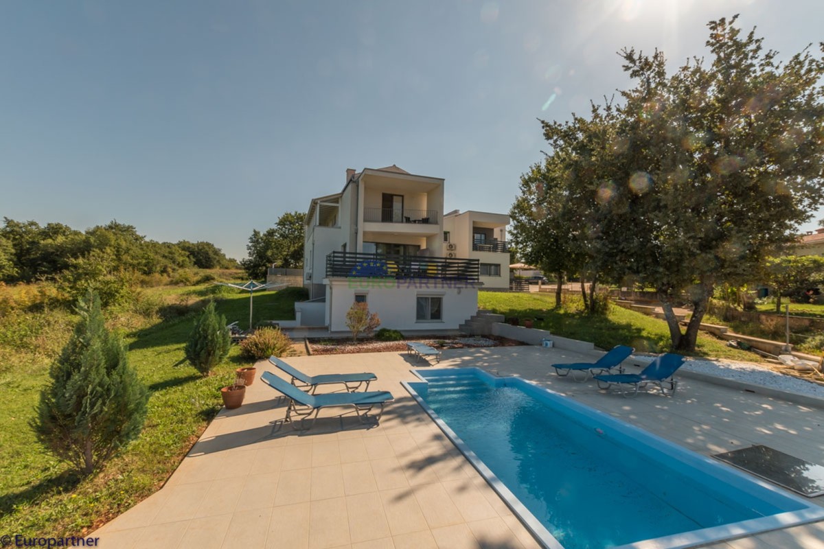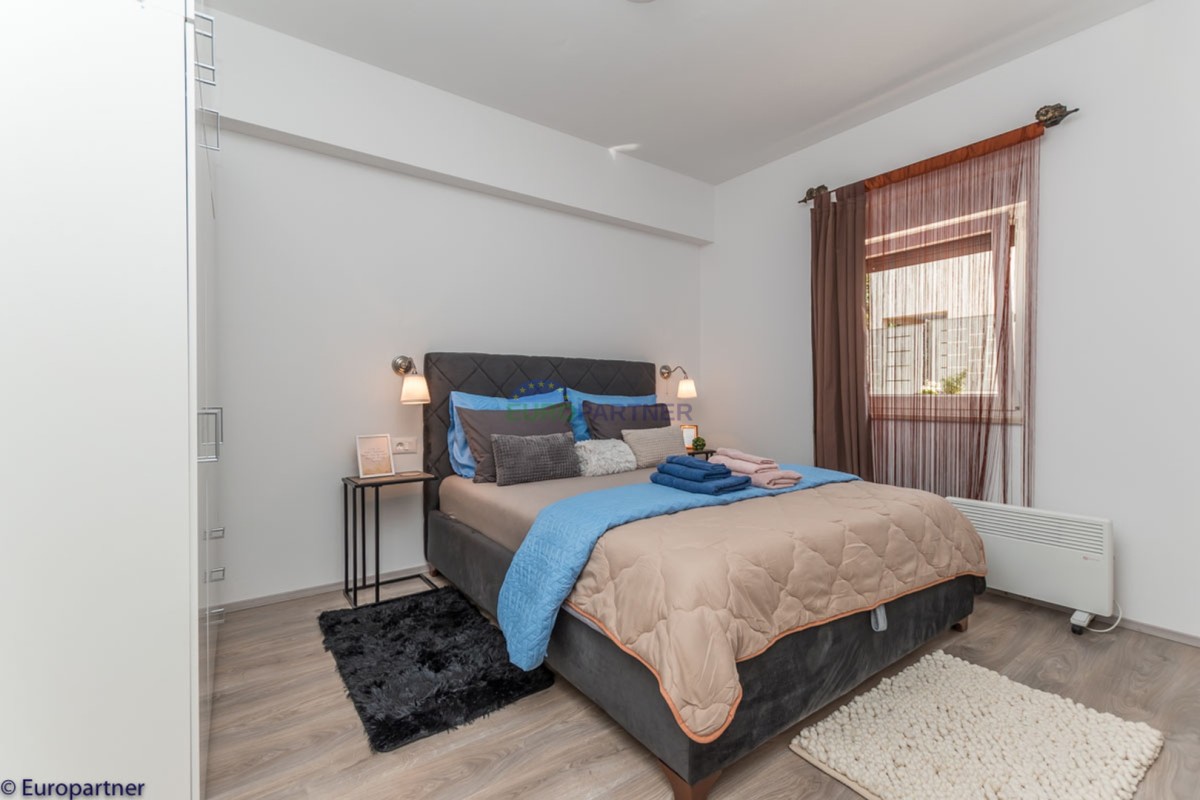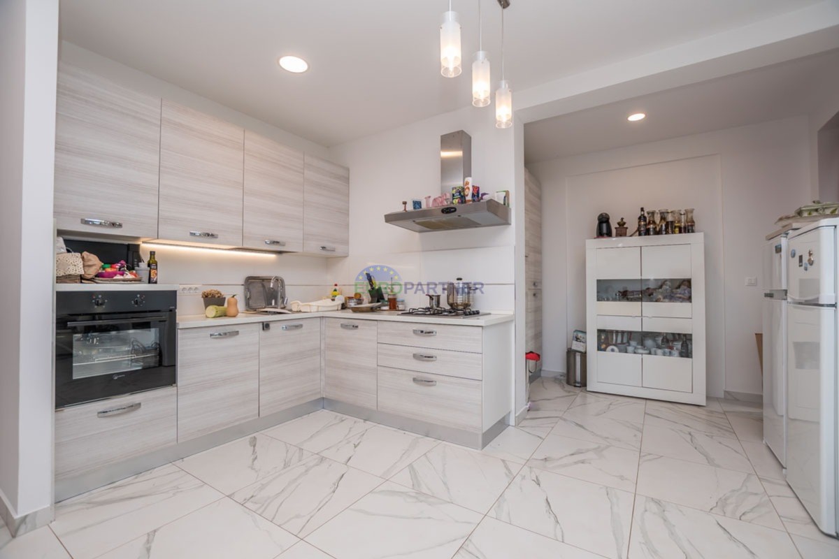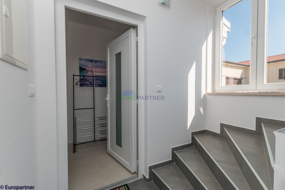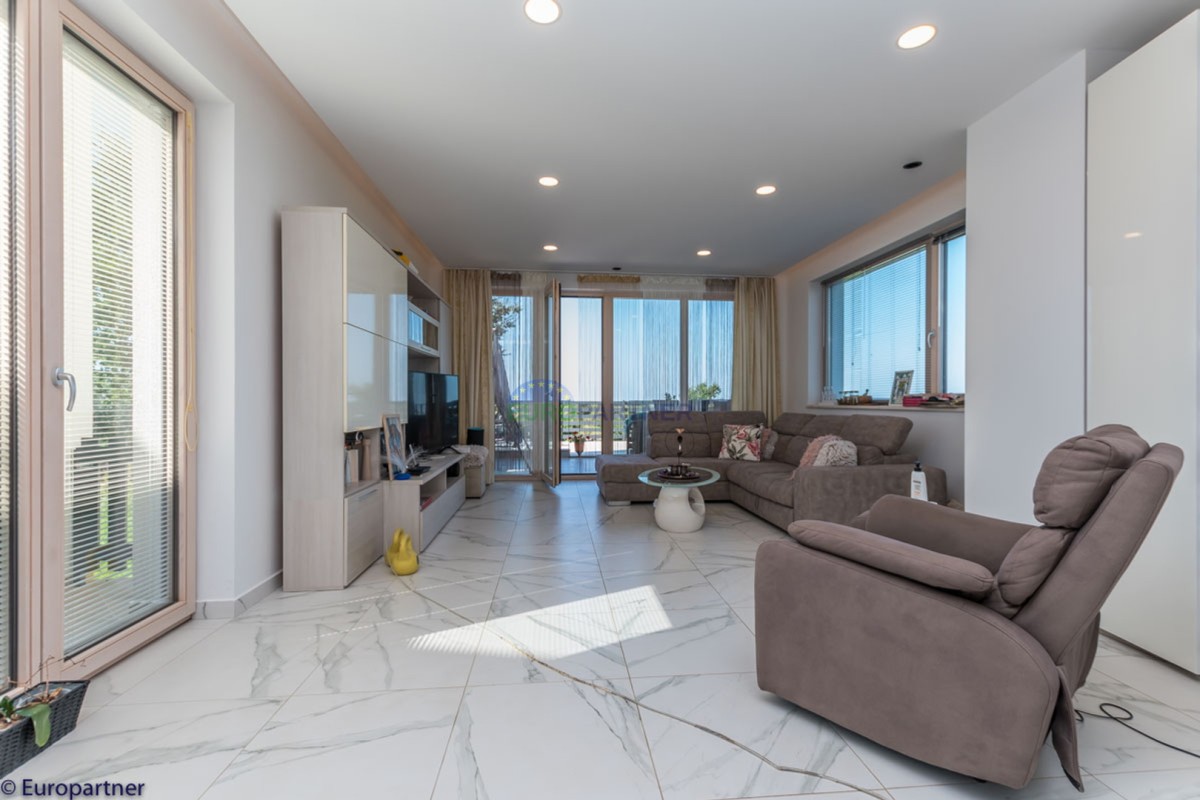 This unique modern villa was designed in such a way that it consists of several residential units that offer a truly beautiful view of the sea. The villa covers 570 m2 and a 1360 m2 plot. Since technology is an integral part of our everyday life today, it has been present in our houses in recent years as well. This villa was built according to the principle of a smart house. A smart home is a home that can be managed and controlled using smartphone, tablet and computer applications. In this way, we can manage all smart home installations, which is why we call such installations smart installations. Smart installations include lighting, blinds, heating, security alarms or systems, ventilation and cooling systems. In short, a smart house provides control over all installation systems that enable a comfortable stay in our home. This villa was built as a smart house. There is a CD with stored information about wall installations. This villa is equipped with underfloor heating, air conditioners, the insulation of the villa is excellent. The house has a fireplace, an air recovery system. Jaustian carpentry, combination of wood, aluminum with four-layer glass. The villa consists of a large apartment of 365 m2 and three apartments located in the second part of the villa. The villa offers simplicity and practicality. On the lower floor there is a kitchen with a dining room, a spacious living room, a bathroom and a storage room. Upstairs there are three bedrooms and two bathrooms. The rooms have access to terraces with a view of the beautiful landscape and the sea. On the ground floor of the villa there is an apartment with two bathrooms, a bedroom, a living room with a kitchen and a dining room. The villa has a swimming pool that belongs to this unit. There are parking spaces for several cars in the yard. Apartment No. 1 The newly renovated apartment on the ground floor offers freshness and spaciousness - a bedroom with a comfortable bed, a living room with satellite channels, a kitchen with a dining room offers everything for a relaxing break from the busy life. The apartment has two terraces where you can drink your morning coffee in peace, read news, a book or enjoy the sunset - the large terrace has a beautiful view of the sea. The specificity of this apartment is that it is connected to the door of another apartment (Apartment No. 2) - yet separately separated. Apartment no. 2 The newly renovated apartment on the ground floor offers freshness and spaciousness - a bedroom with a comfortable bed, a living room with satellite channels, a kitchen with a dining room offers total comfort. The apartment has two beautiful terraces where you can fully enjoy it - the larger terrace has a beautiful view of the sea. The apartment is connected to the door of another apartment (Apartment No. 1) and gives the possibility of a single unit, yet separately it forms only one apartment. Apartment no. 3 The spacious newly furnished apartment on the first floor offers freshness and spaciousness - 2 bedrooms with comfortable beds, a living room with satellite channels, a kitchen with a dining room. The apartment has 2 bedrooms, 2 bathrooms, 2 terraces where you can truly enjoy peace - the larger terrace has a beautiful view to the sea. This villa is for sale fully furnished. The furniture is new and specially designed for every space. The white color spreads throughout the villa, which gives the impression of cleanliness and freshness. Upstairs there is a beautiful wooden floor. When decorating, every detail was taken care of, and the emphasis was on practicality and comfort. The villa offers an extremely beautiful view of the sea and nature. Due to the way it was designed, this villa is an excellent rental investment.