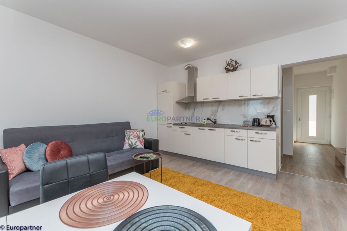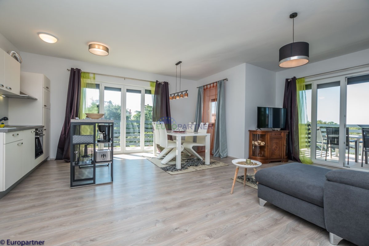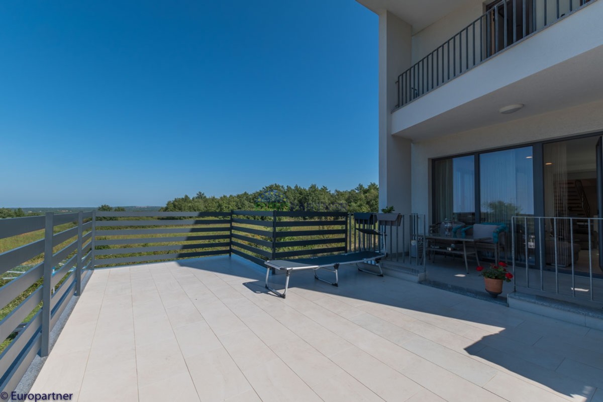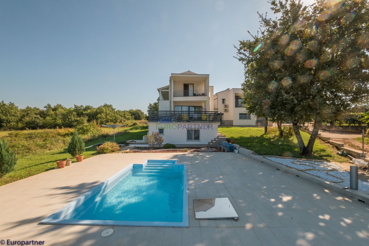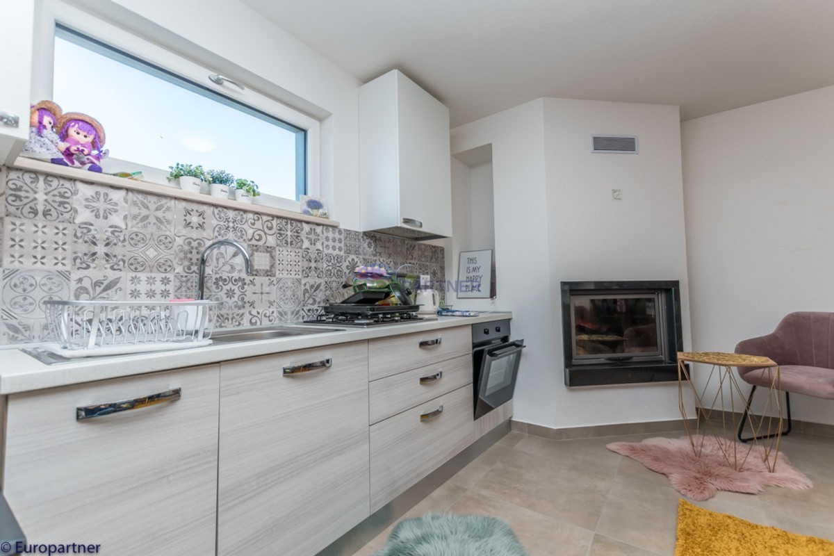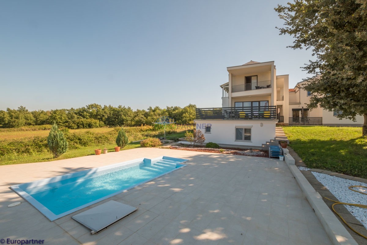 This unique modern villa was designed in such a way that it consists of several residential units that offer a truly beautiful view of the sea. The villa covers 570 m2 and a 1360 m2 plot. Since technology is an integral part of our everyday life today, it has been present in our houses in recent years as well. This villa was built according to the principle of a smart house. A smart home is a home that can be managed and controlled using smartphone, tablet and computer applications. In this way, we can manage all smart home installations, which is why we call such installations smart installations. Smart installations include lighting, blinds, heating, security alarms or systems, ventilation and cooling systems. In short, a smart house provides control over all installation systems that enable a comfortable stay in our home. This villa was built as a smart house. There is a CD with stored information about wall installations. This villa is equipped with underfloor heating, air conditioners, the insulation of the villa is excellent. The house has a fireplace, an air recovery system. Jaustian carpentry, combination of wood, aluminum with four-layer glass. The villa consists of a large apartment of 365 m2 and three apartments located in the second part of the villa. The villa offers simplicity and practicality. On the lower floor there is a kitchen with a dining room, a spacious living room, a bathroom and a storage room. Upstairs there are three bedrooms and two bathrooms. The rooms have access to terraces with a view of the beautiful landscape and the sea. On the ground floor of the villa there is an apartment with two bathrooms, a bedroom, a living room with a kitchen and a dining room. The villa has a swimming pool that belongs to this unit. There are parking spaces for several cars in the yard. Apartment No. 1 The newly renovated apartment on the ground floor offers freshness and spaciousness - a bedroom with a comfortable bed, a living room with satellite channels, a kitchen with a dining room offers everything for a relaxing break from the busy life. The apartment has two terraces where you can drink your morning coffee in peace, read news, a book or enjoy the sunset - the large terrace has a beautiful view of the sea. The specificity of this apartment is that it is connected to the door of another apartment (Apartment No. 2) - yet separately separated. Apartment no. 2 The newly renovated apartment on the ground floor offers freshness and spaciousness - a bedroom with a comfortable bed, a living room with satellite channels, a kitchen with a dining room offers total comfort. The apartment has two beautiful terraces where you can fully enjoy it - the larger terrace has a beautiful view of the sea. The apartment is connected to the door of another apartment (Apartment No. 1) and gives the possibility of a single unit, yet separately it forms only one apartment. Apartment no. 3 The spacious newly furnished apartment on the first floor offers freshness and spaciousness - 2 bedrooms with comfortable beds, a living room with satellite channels, a kitchen with a dining room. The apartment has 2 bedrooms, 2 bathrooms, 2 terraces where you can truly enjoy peace - the larger terrace has a beautiful view to the sea. This villa is for sale fully furnished. The furniture is new and specially designed for every space. The white color spreads throughout the villa, which gives the impression of cleanliness and freshness. Upstairs there is a beautiful wooden floor. When decorating, every detail was taken care of, and the emphasis was on practicality and comfort. The villa offers an extremely beautiful view of the sea and nature. Due to the way it was designed, this villa is an excellent rental investment.