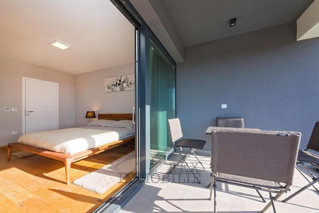 For sale is a modern house located just 500 meters from the sea and 1.4 km from the city center of Poreč. The ground floor features an open space living room with a kitchen equipped with top-quality designer furniture, offering views of the outdoor terrace and pool through glass walls. The first floor houses three bedrooms, each with its own bathroom.