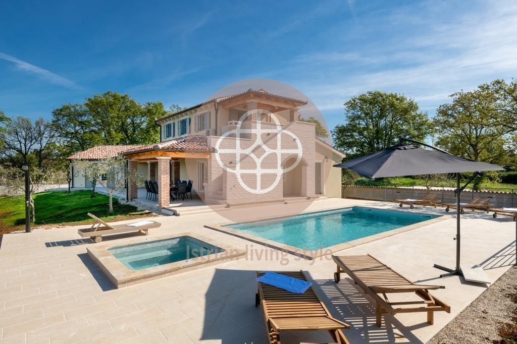 On the upper level there are 4 more bedrooms, all with private bathrooms. The master bedroom has its own balcony ( sea view! ) with stairs to the generously pool area ( ca.11x5 m ) with roman stairs and a jacuzzi for 6 persons.