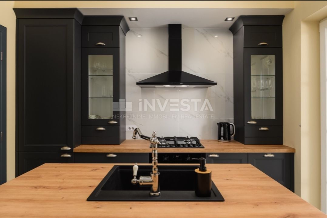 In a small place near Kanfanar, there is a villa built in the Mediterranean style with a surface area of 186 m², situated on a plot of 718 m².