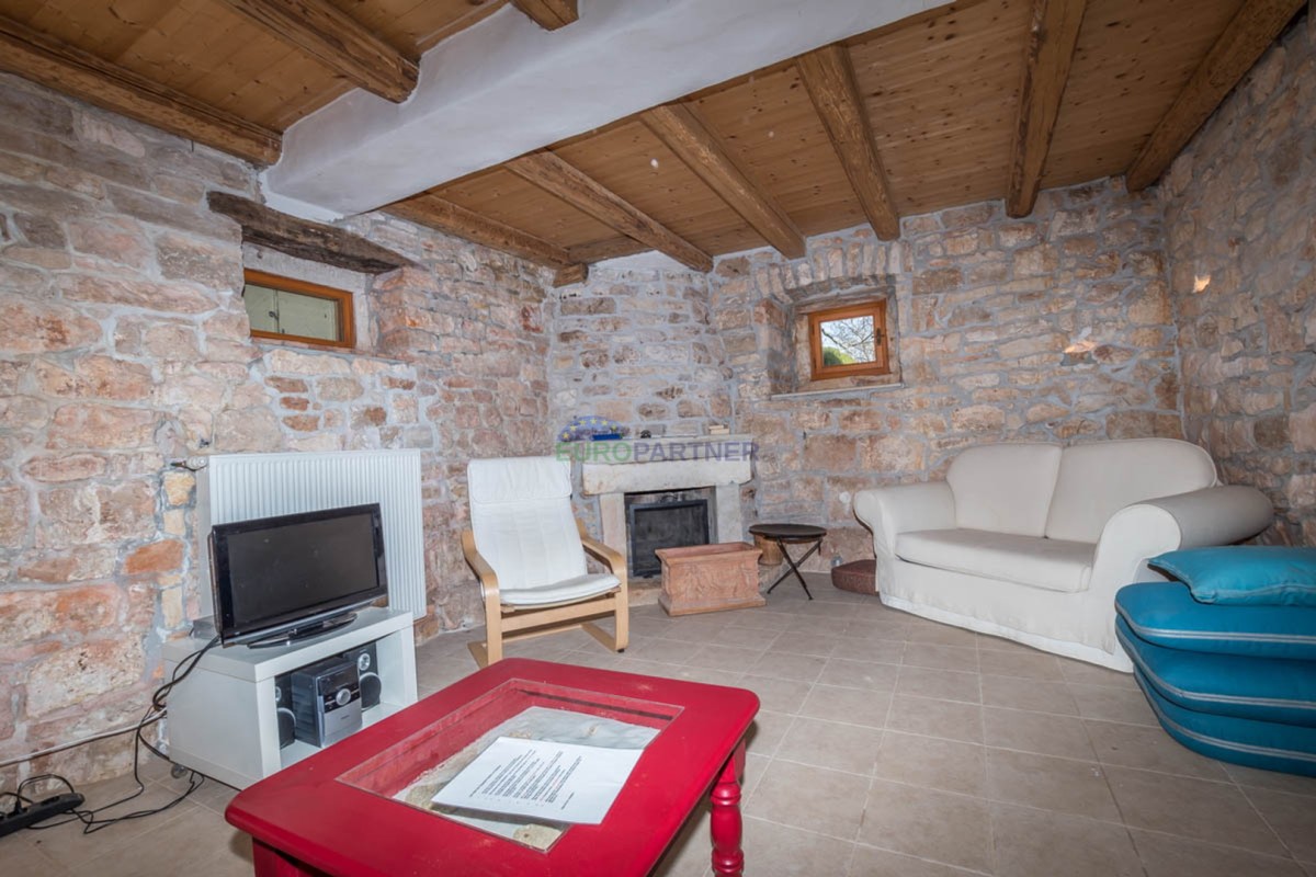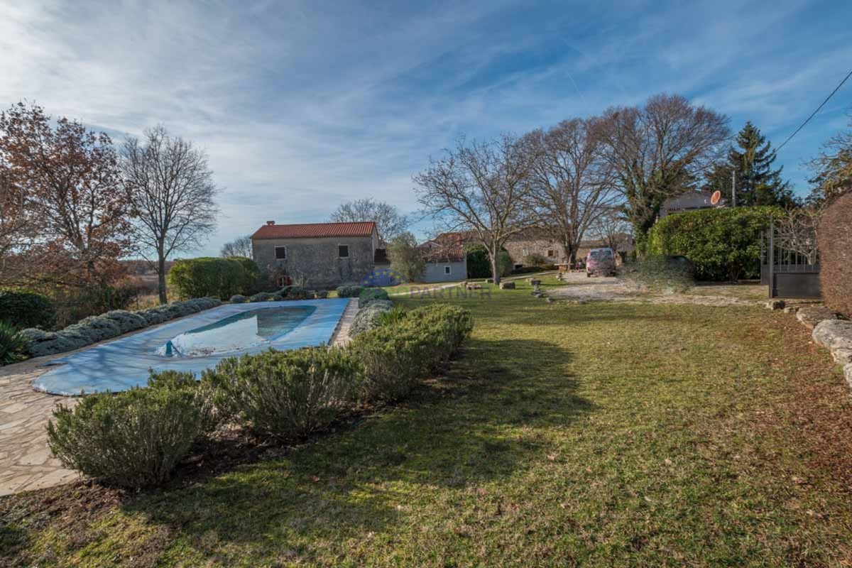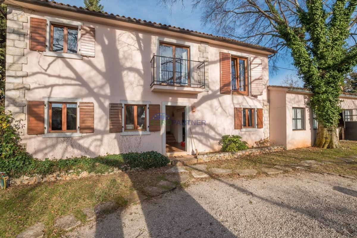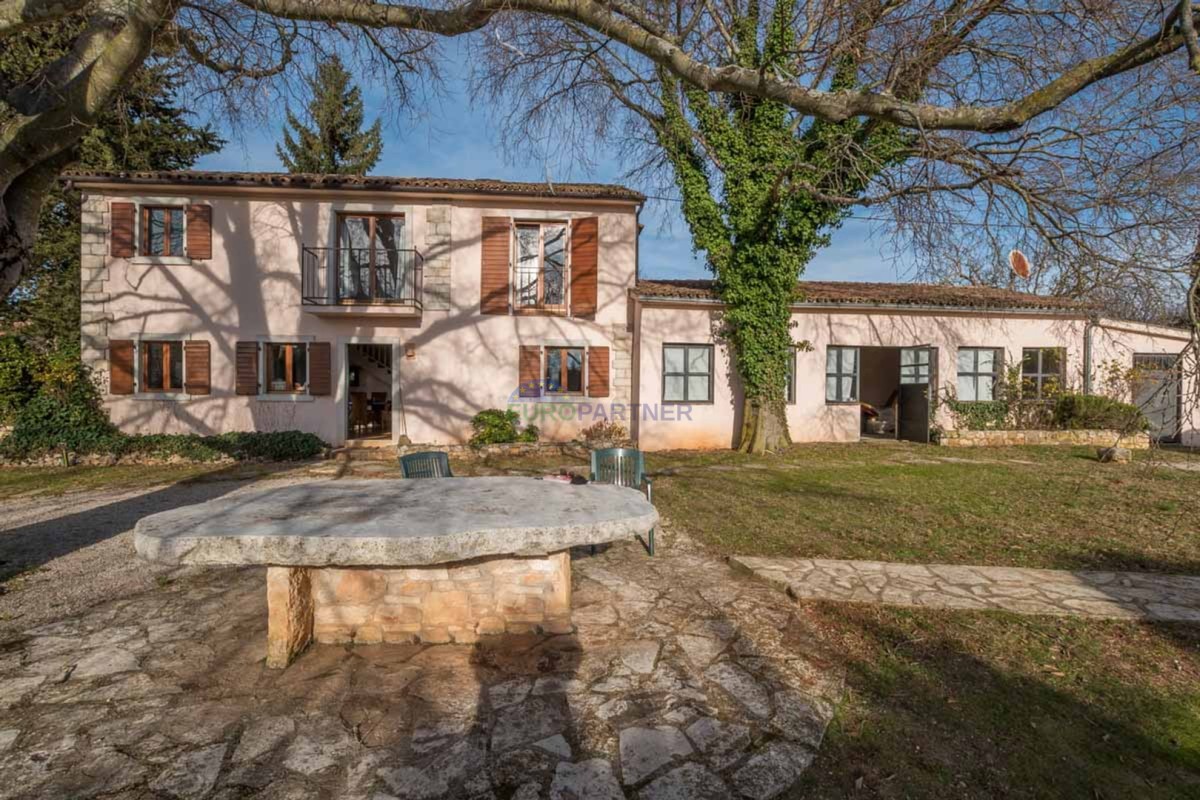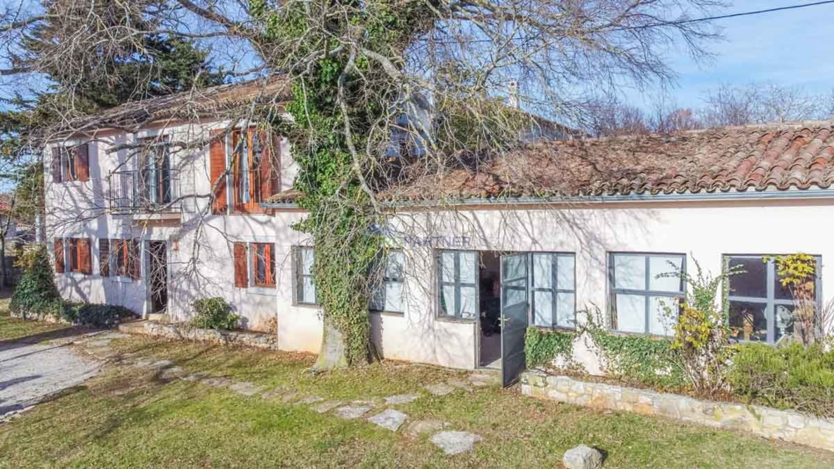 On the edge of a small village in Istria, in the middle of vineyards and flowering meadows, there is a completely renovated old Istrian house with another smaller guest house. We would say it stands proudly a bit wildly romantic in the beauty of these thick stone walls (partly from the Byzantine period), with a beautifully large, fully fenced garden, a swimming pool with semicircular Roman stairs (approx. 12 x 5 meters) and several terraces, and lots of charm. There are many houses that often resemble each other. But there are also such unique, incomparable and with a lot of feeling and attention to detail restored to the farthest corners. This country house is one such property. With the first step through the door and the gate of the estate, you enter a completely different world. The old stone house looks almost amazing with thick stone walls, an open fireplace, old door fittings, handmade tiles and self-designed majolica paintings. Each of the bedrooms has a different color. There are small, fine details everywhere that the eye notices only with a closer inspection. If you want to see enough beautiful, finely coordinated and again colorful interiors then you must see this unique house. The owner of this beautiful stone house has managed to create a coherent living environment in which you have only one thing in mind - to stay and enjoy! Rarely does the large garden surrounding both houses look like a lush green oasis from another world in the middle of which 400-year-old LADONIA grows proudly and provides both houses with the necessary shade during the summer heat. Under the imposing tree there is a rustic table made of natural stone for common moments in the garden. The water in the pool is ecological with a light base of sea salt. Underwater lighting ensures romantic evenings by the pool. Large stone house of 156m2 spreads over the ground floor, first floor and attic. The ground floor has a kitchen with dining area, spacious living room with fireplace, which gives this room a special charm. Stone stairs lead to the first floor of the house where there are three bedrooms and two bathrooms, and in the attic another bedroom and bathroom. The second house of 123m2 is on two floors, on the ground floor there is a living room with fireplace, large kitchen and dining room. Upstairs are two bedrooms and a bathroom. Each house has gas central heating and attic air conditioning. For all art lovers it is very important to note that next to the smaller house there is a beautiful studio cca.35m2.