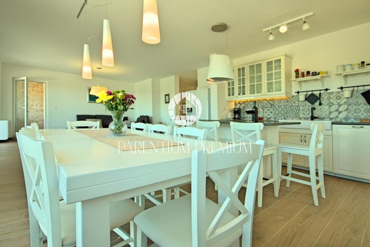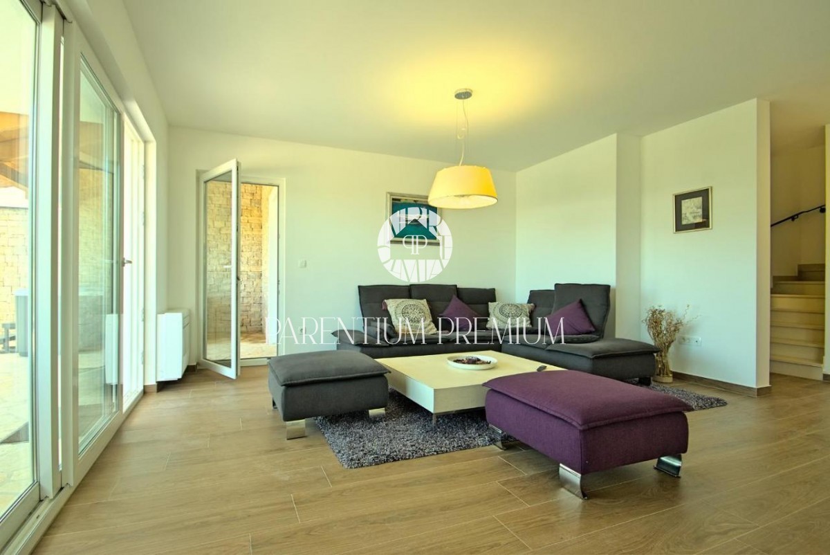 This newly built beautiful stone villa with a beautiful view of the sea and the surrounding area is for sale in the vicinity of Poreč.
