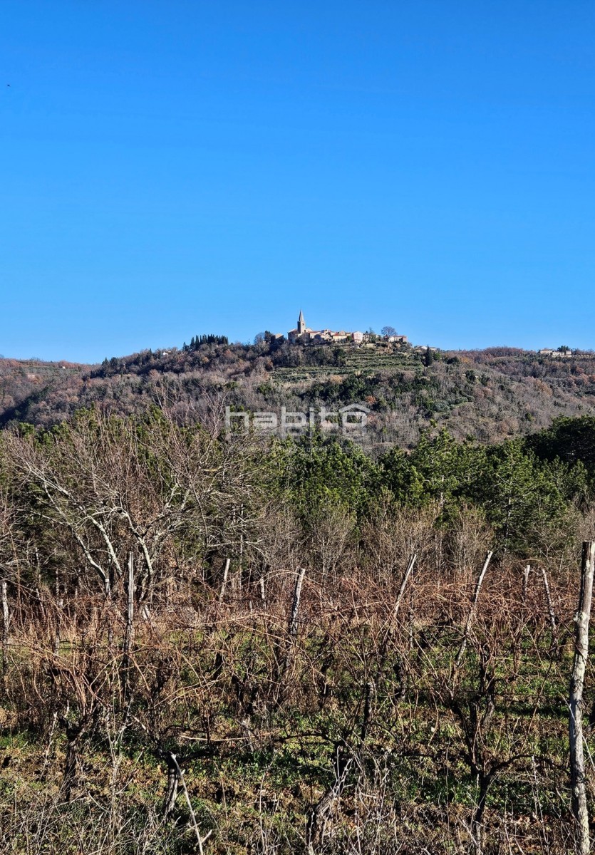 Central Istria, Groznjan, Interesting building land for sale with a beautiful view of Groznjan, vineyards and olive groves, possibility of building several houses