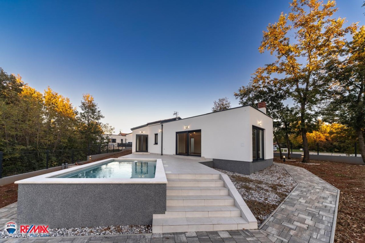 A modern single-storey house for sale located in a peaceful area just 2 km from the center of Barban. The house has a total living area of 145 m² and is situated on a landscaped and fully fenced plot of 760 m², offering a high level of privacy.