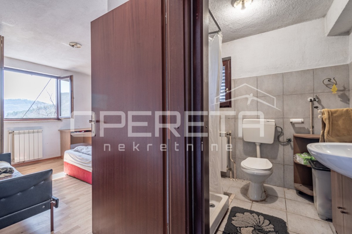 A spacious detached house located in a peaceful setting, not far from Buzet, presents an ideal opportunity for family living or investment in tourist rentals. The house consists of three separate apartments: one with two bedrooms, suitable for a family, and two apartments with one bedroom. Additionally, the house offers extra spaces such as a garage for secure parking and a workshop, previously used as an auto mechanic workshop, with potential for various uses.