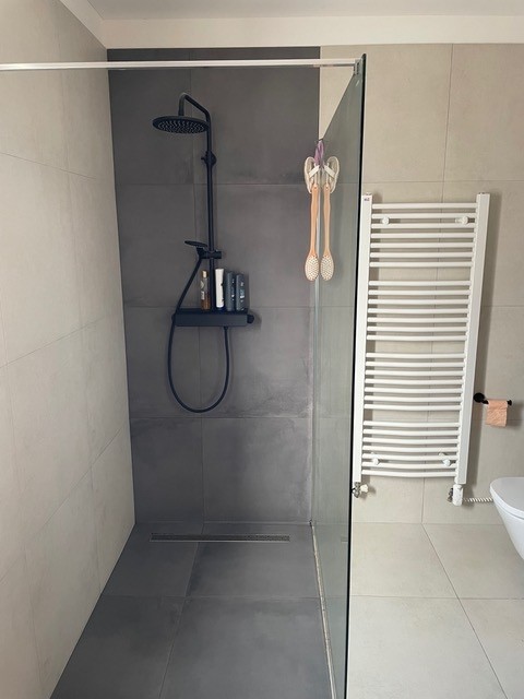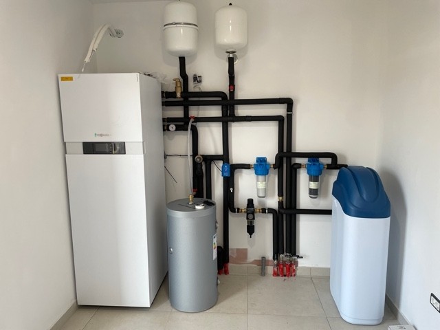 Heating (underfloor) and cooling of the house (fan coil units), as well as domestic hot water heating, are powered by a Viessmann heat pump, which can also be remotely controlled via a smartphone app.