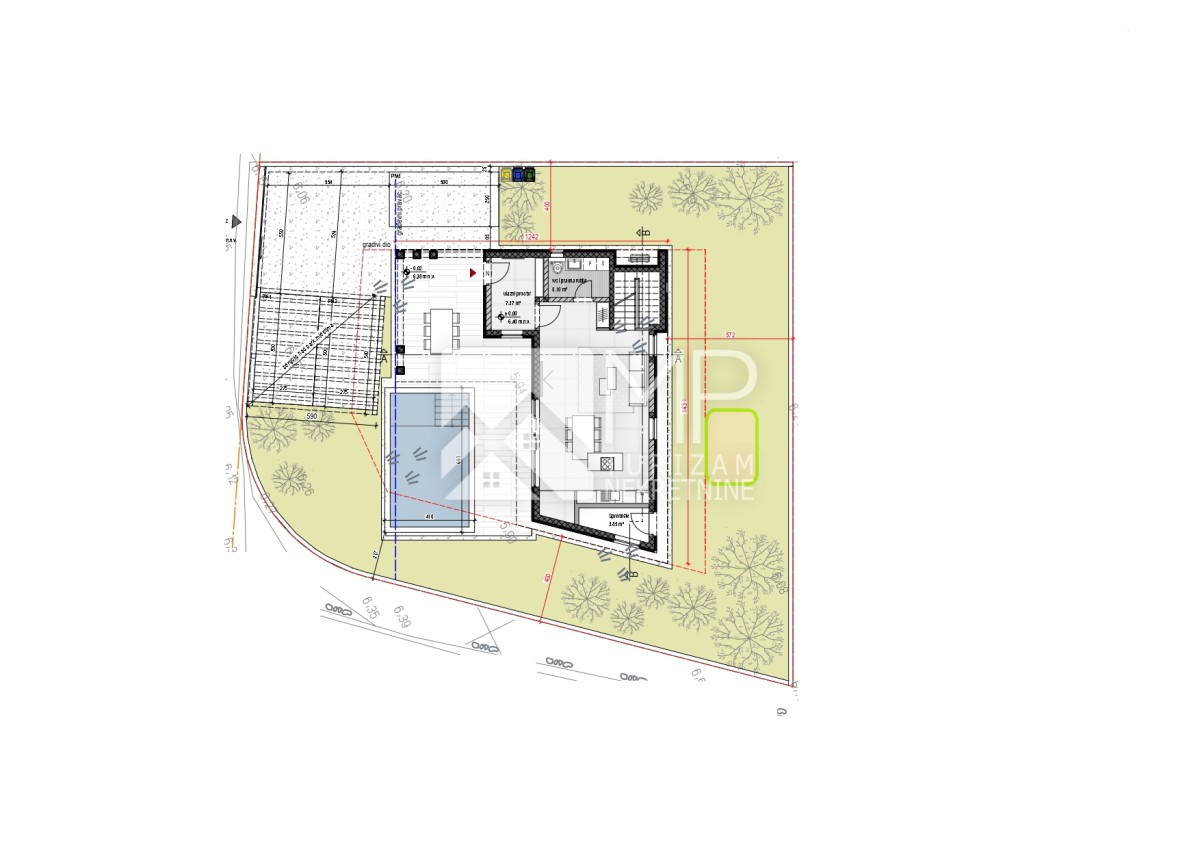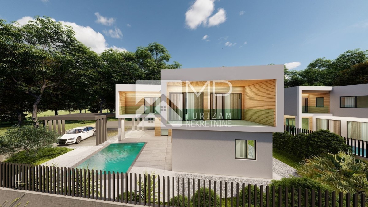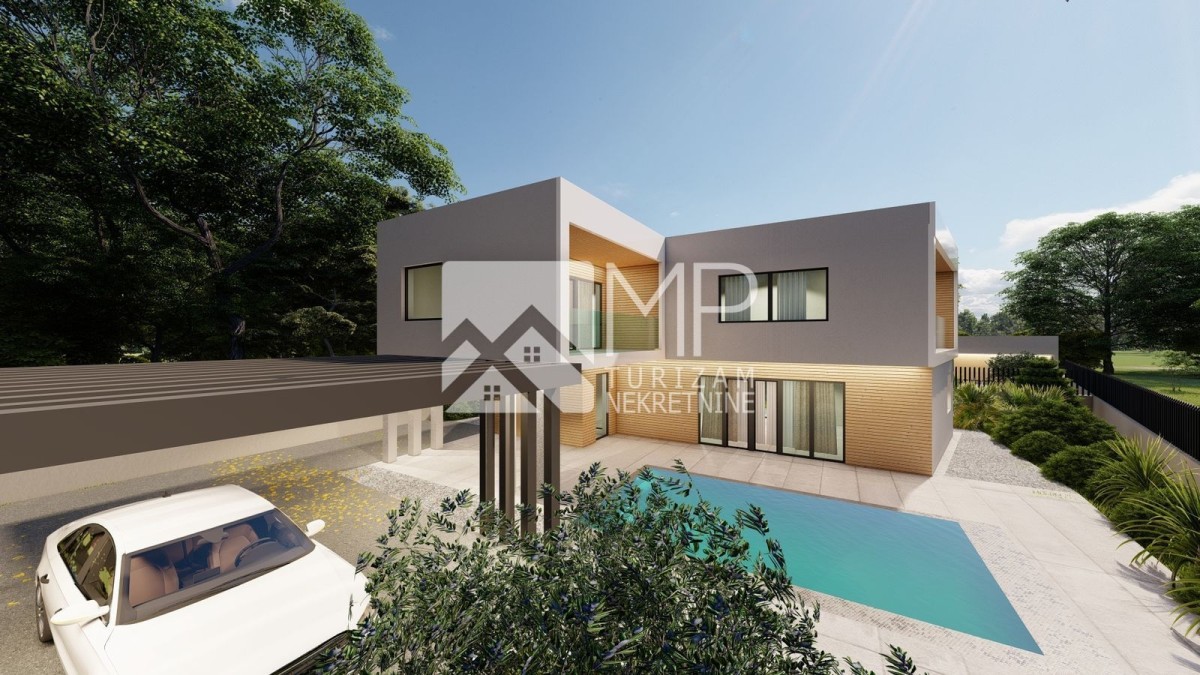 The house will be located on a plot of 511m2, it will consist of a ground floor and an upper floor of 190m2 with a 27m2 swimming pool.