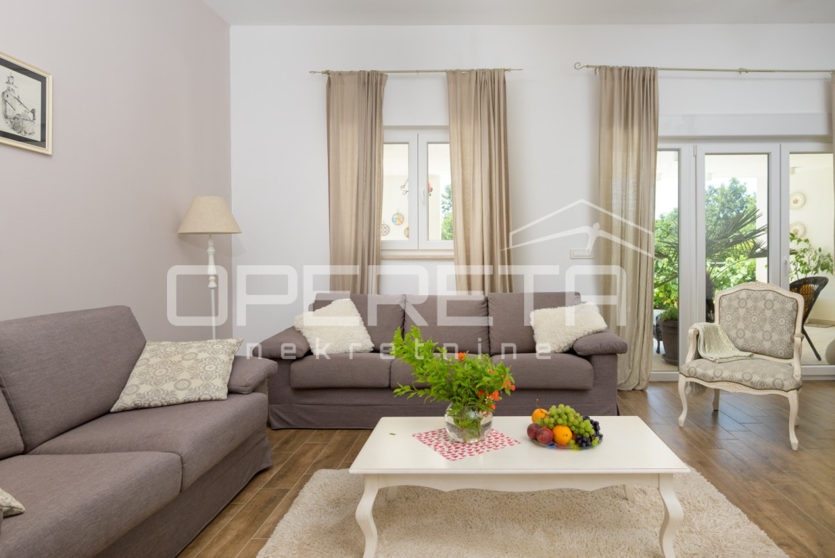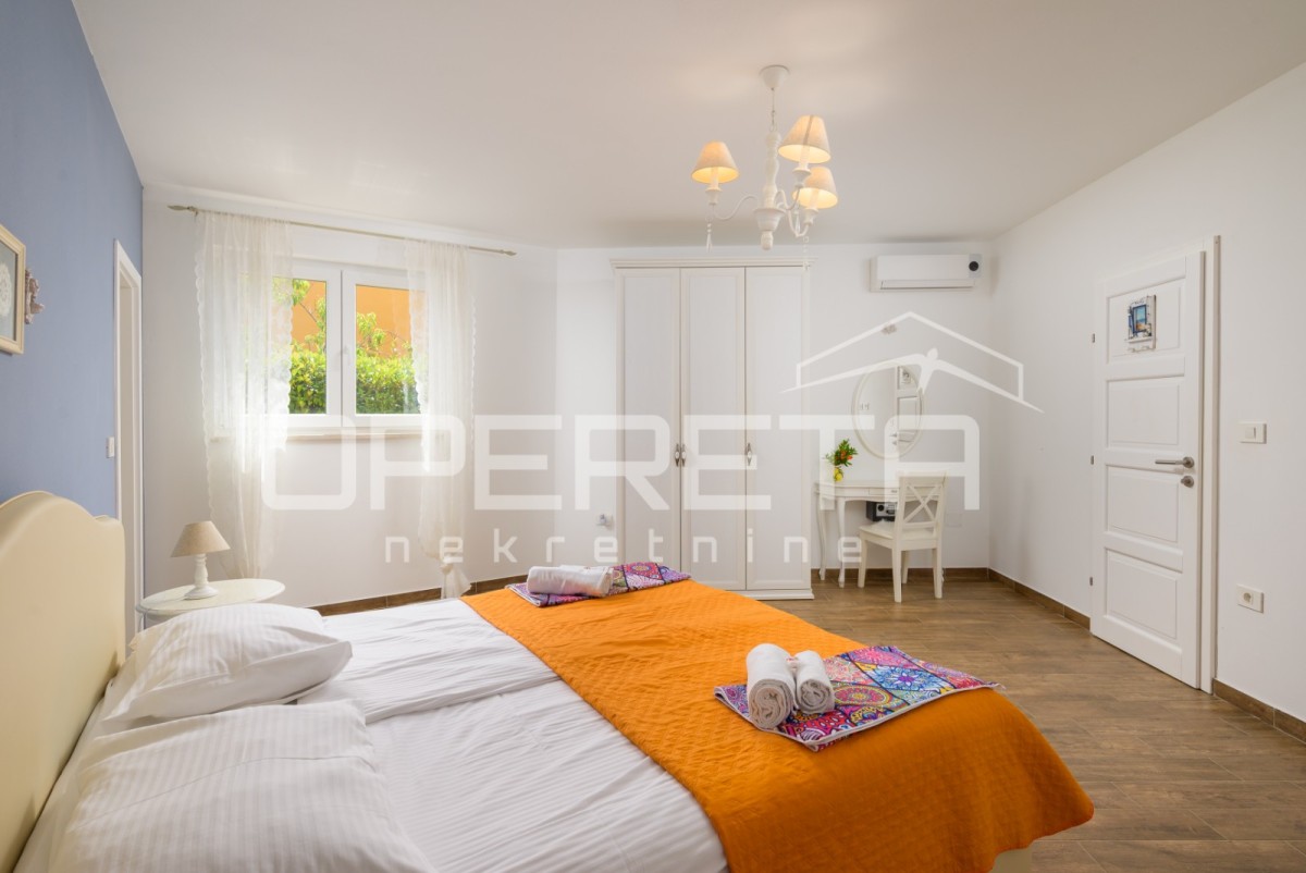 The yard is completely fenced and decorated with Mediterranean vegetation, ensuring privacy and security - ideal for families with children and pets.