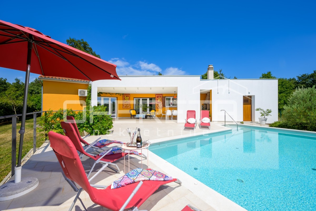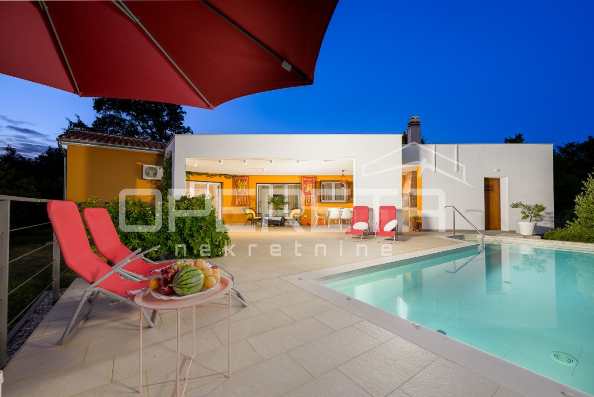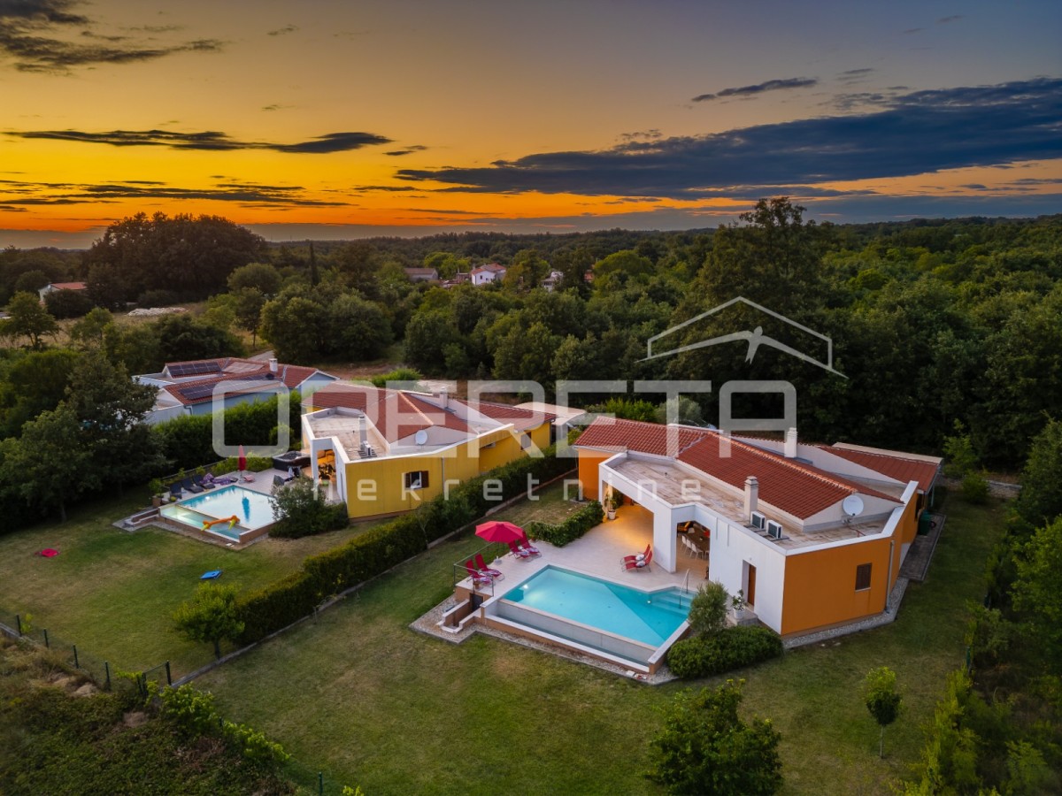 Two attractive modern villas in a set are for sale, located next to each other, in a peaceful setting in central Istria, not far from the magical medieval town of Svetvinčenat. This rare complex represents an ideal opportunity for investment, but also for private use - as a family estate or two independent holiday homes with complete privacy.