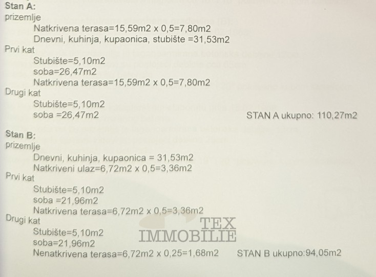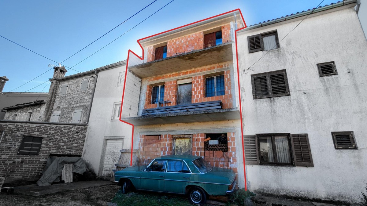 A terraced house in the unfinished phase is for sale, located in a quiet location, just 10 kilometers from the center of Poreč and 9 kilometers from the sea.
